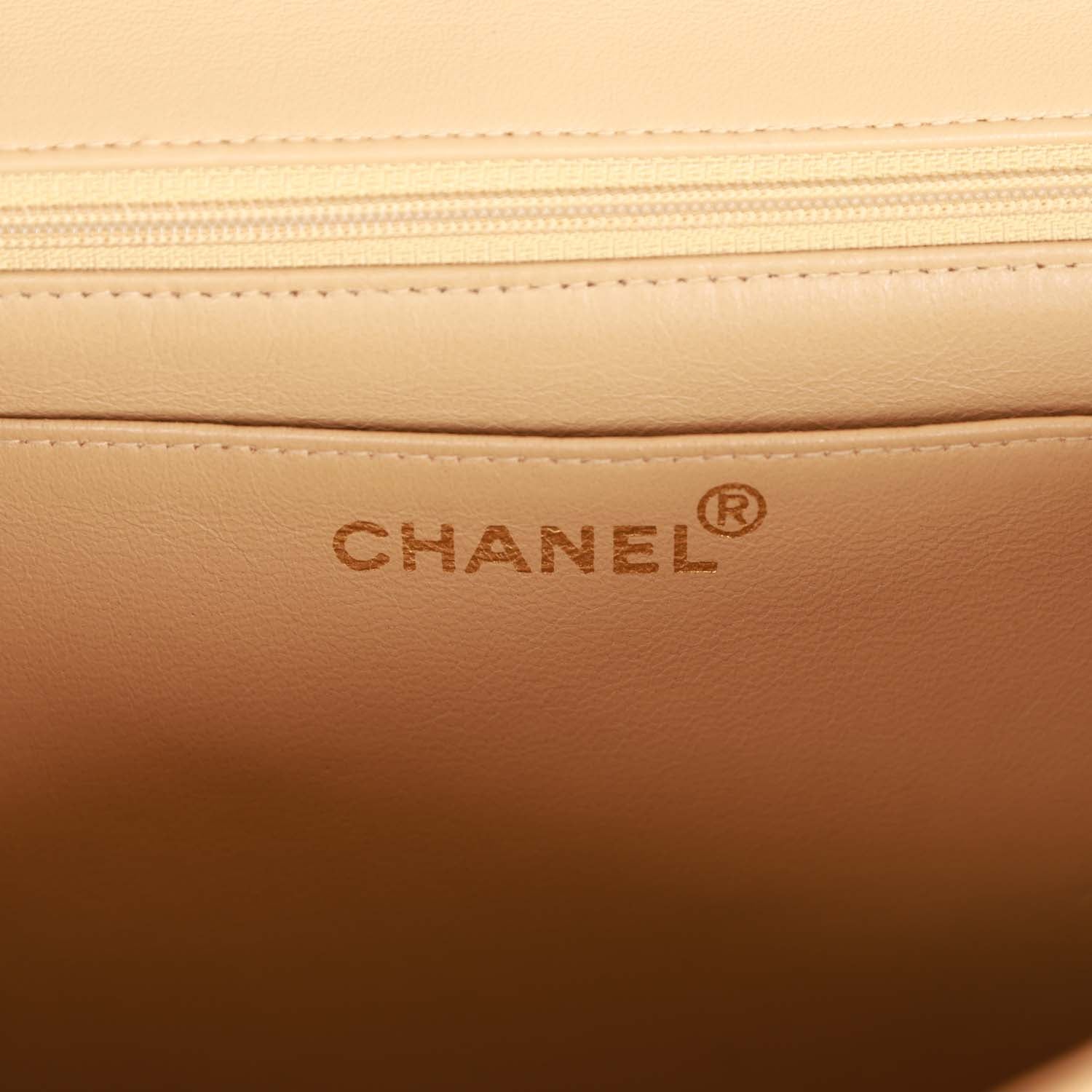 The interior is lined in Caramel Leather with one zip pocket with a classic CC logo pull and a slip pocket underneath.