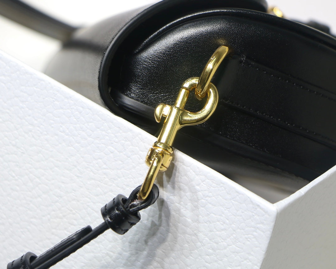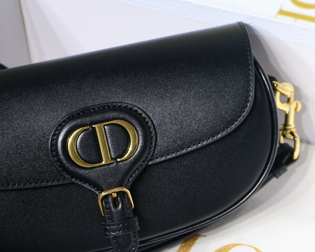 New this season, the Dior Bobby East-West bag modernizes the allure of the Hobo silhouette through elegant lines and harmonious proportions. The black box calfskin style features a suede interior for added suppleness as well as antique gold-finish metal hardware. Adorned with a removable, adjustable sliding shoulder strap with a signature military-inspired buckle, the Dior Bobby bag can be carried by hand, over the shoulder by day or crossbody for a sportier look.