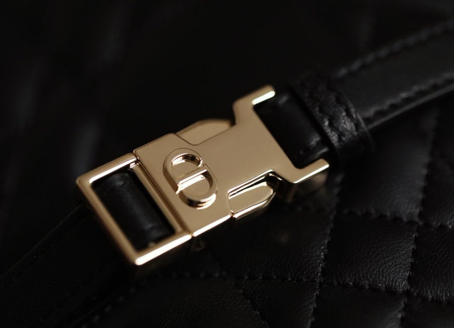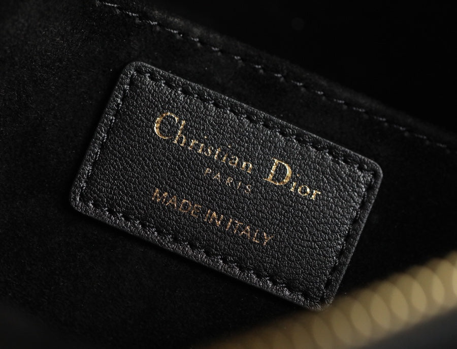 New this season, Maria Grazia Chiuri imagines the Dior Vibe bag with the allure of a Hobo bag showcasing modern lines. The black Cannage lambskin style features a suede interior while a white 'CHRISTIAN DIOR PARIS' signature adorns the bottom of the bag. Featuring a handle in addition to a removable and adjustable shoulder strap with a military-inspired buckle, the small Dior Vibe bag can be carried by hand, on the shoulder or crossbody for a sportier look.