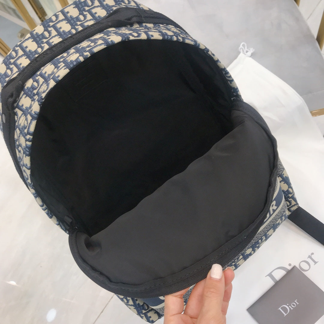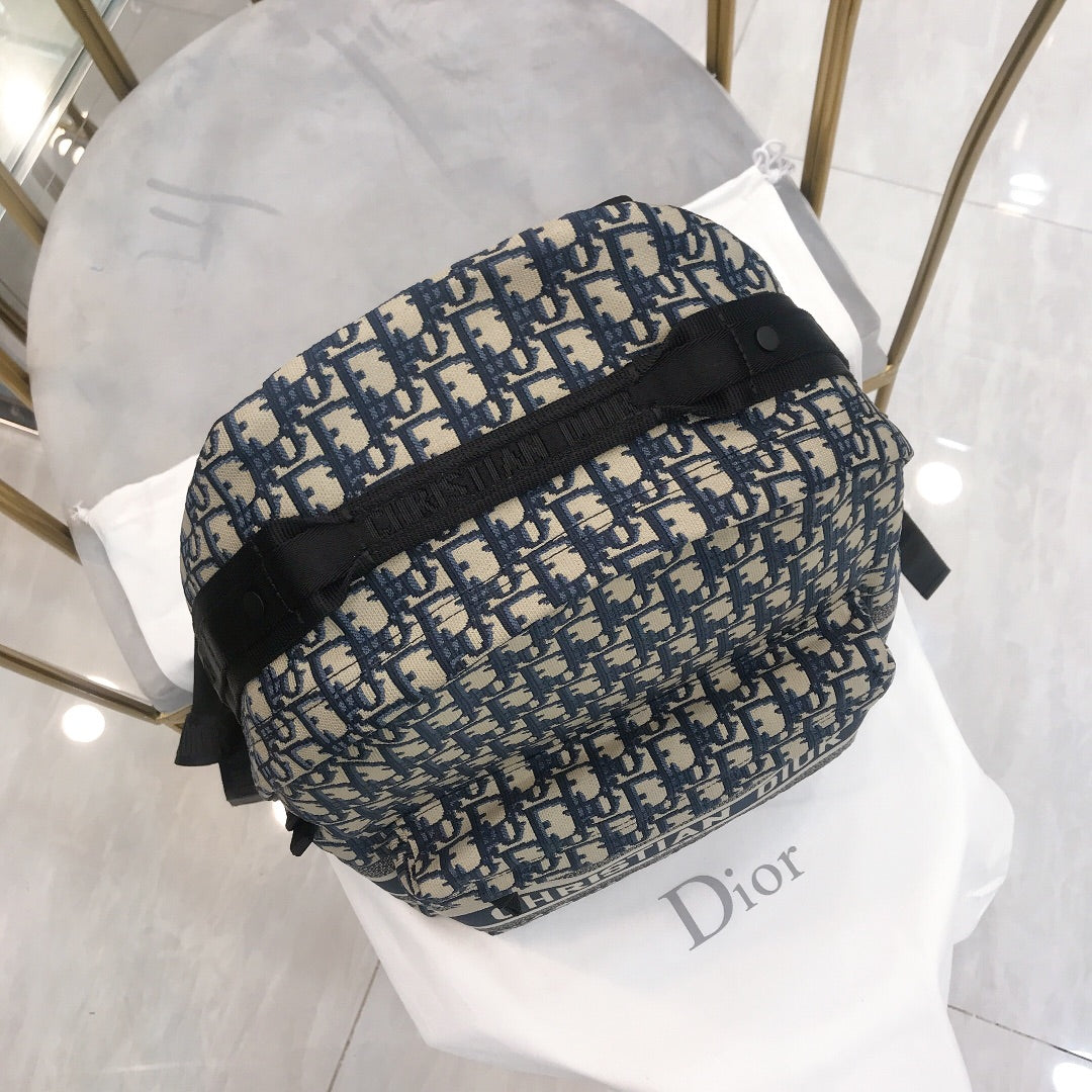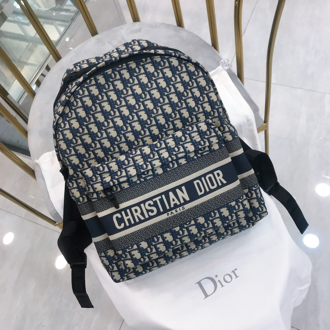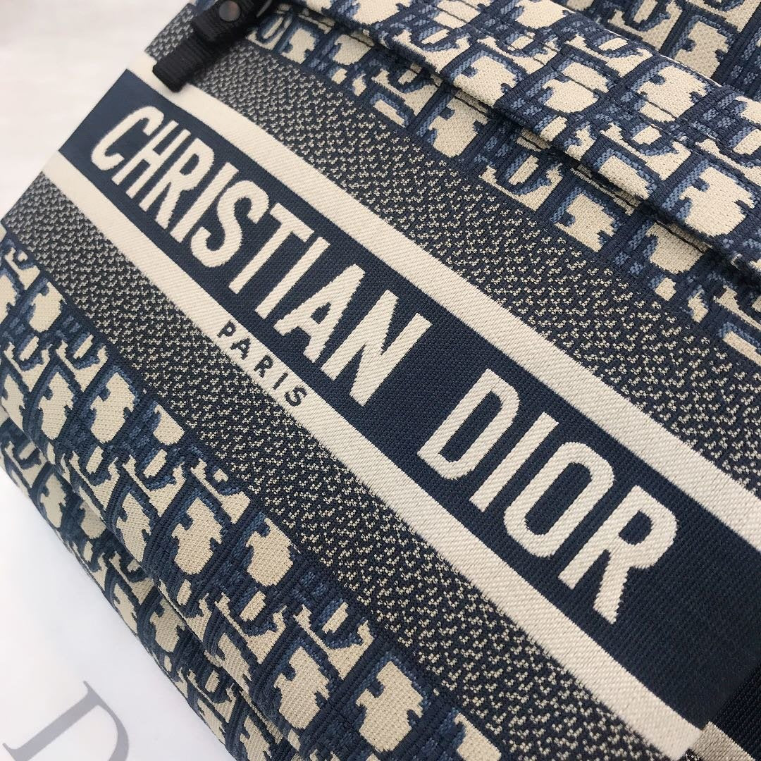 The DiorTravel backpack combines hallmark House elements with a modern and practical design. Made with blue water-repellant Dior Oblique technical jacquard, it is embellished with a 'CHRISTIAN DIOR' signature on the front. The large zipped flap opens with ease to access all the essentials. The large backpack can be carried over the shoulder or on the back thanks to its handle and straps.