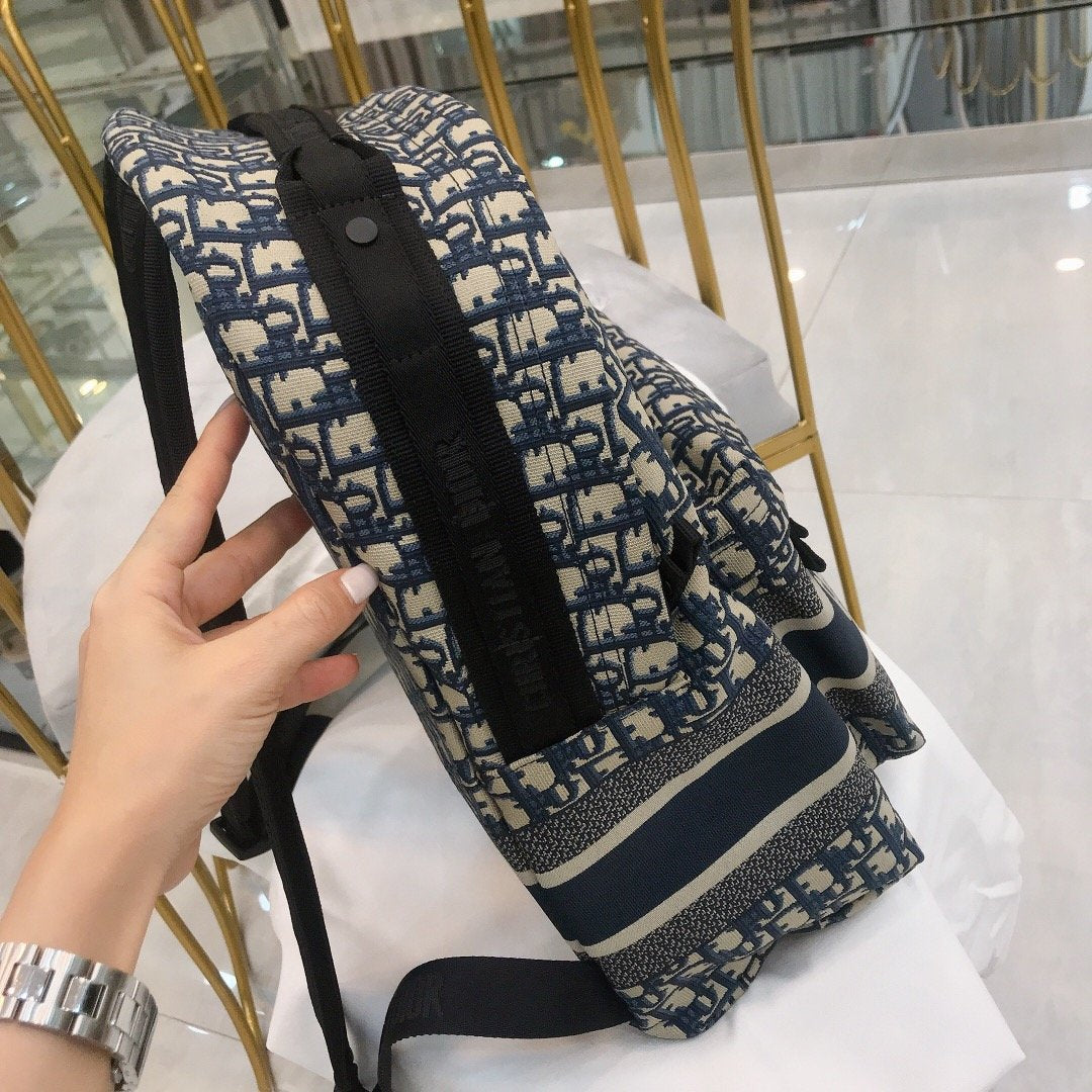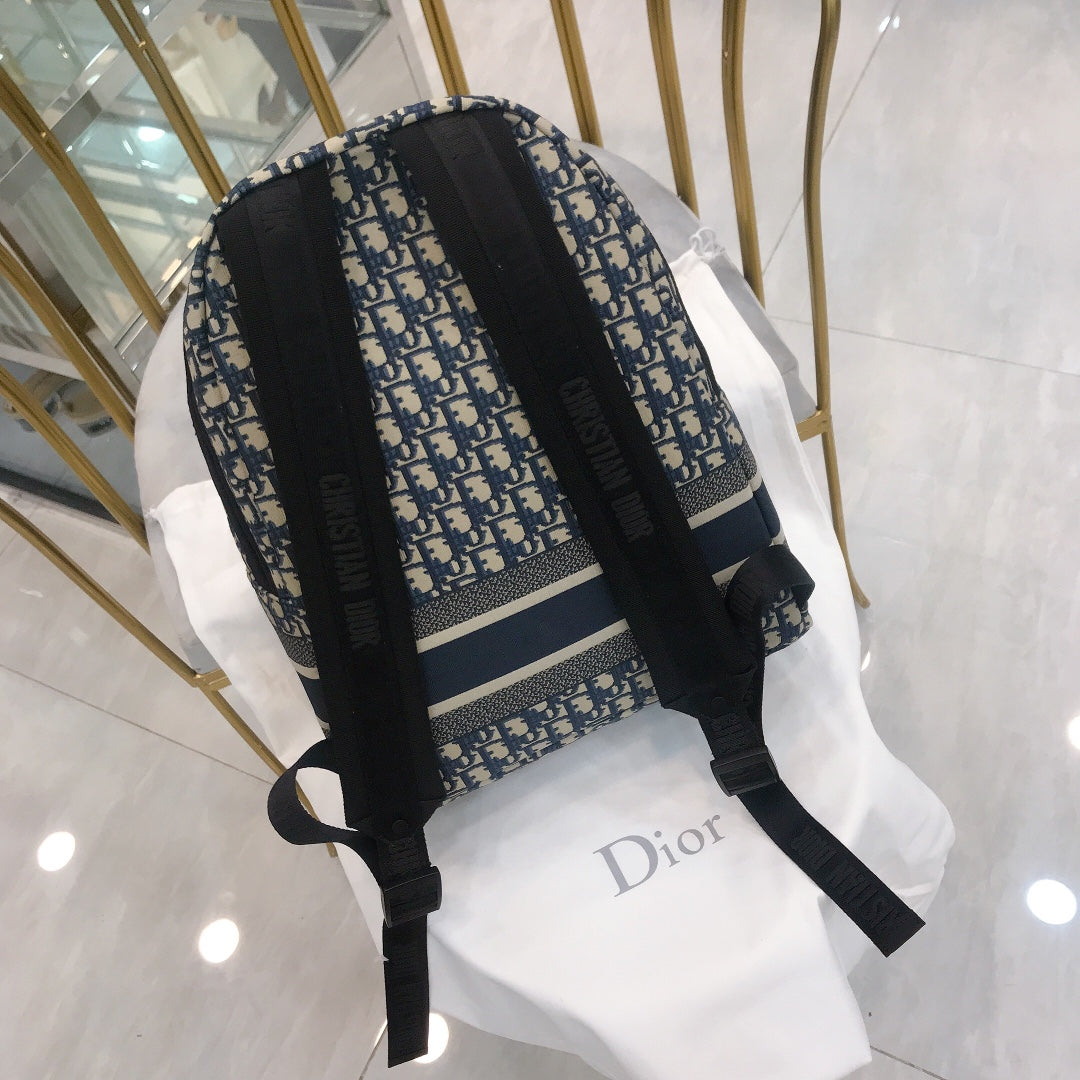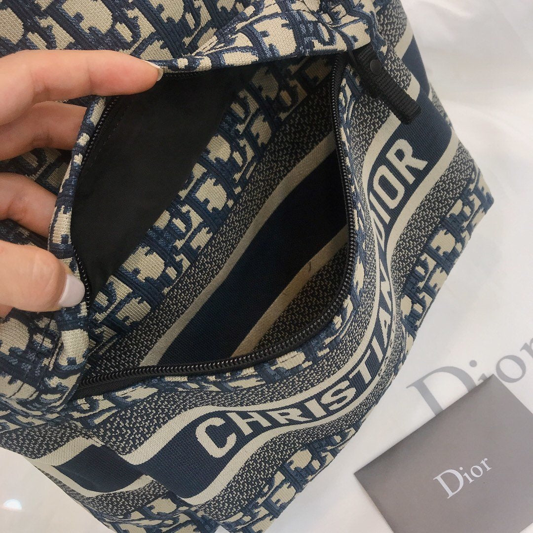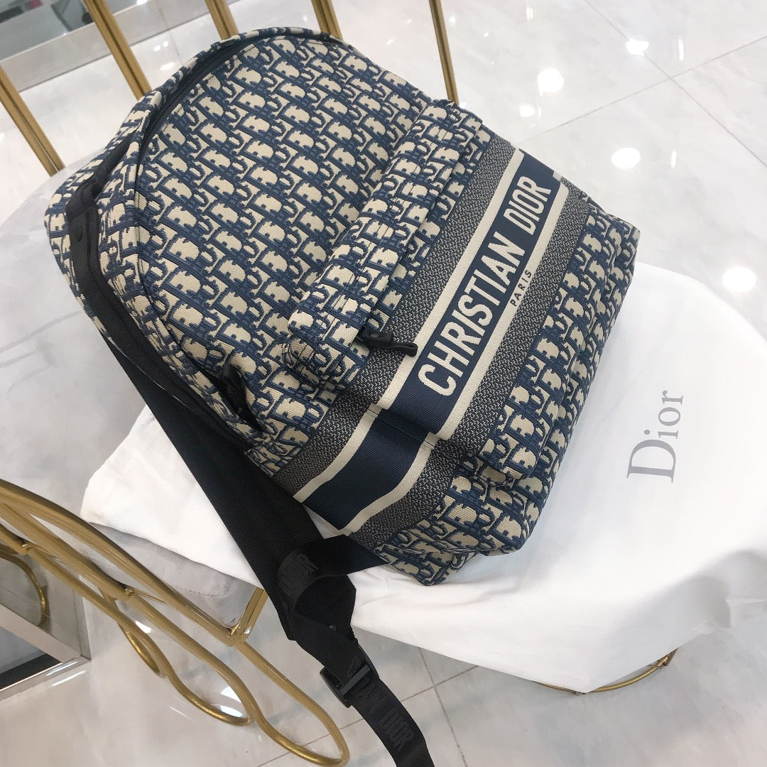 The DiorTravel backpack combines hallmark House elements with a modern and practical design. Made with blue water-repellant Dior Oblique technical jacquard, it is embellished with a 'CHRISTIAN DIOR' signature on the front. The large zipped flap opens with ease to access all the essentials. The large backpack can be carried over the shoulder or on the back thanks to its handle and straps.