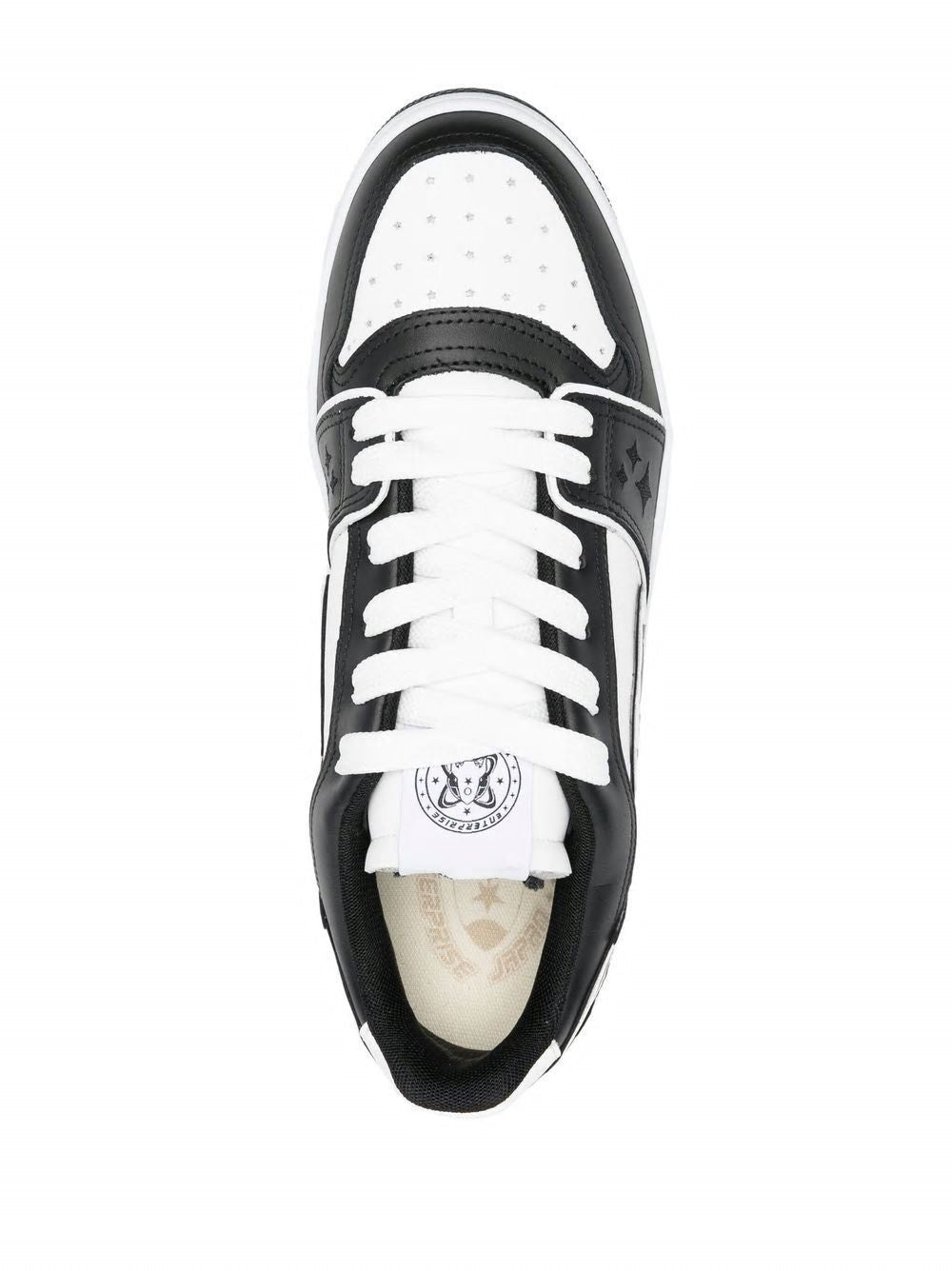 Take a step into the future of fashion with this sleek and stylish accessory. Crafted entirely from leather, this modern masterpiece is the perfect blend of luxury and functionality. Its bold black and white color palette is sure to make a statement.