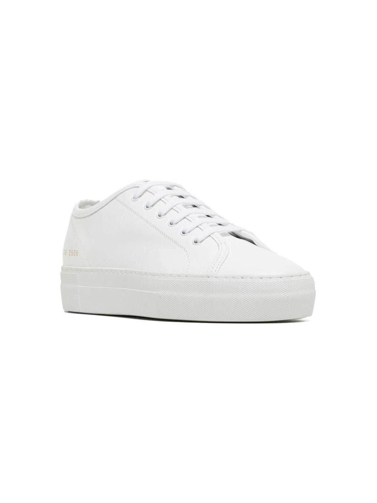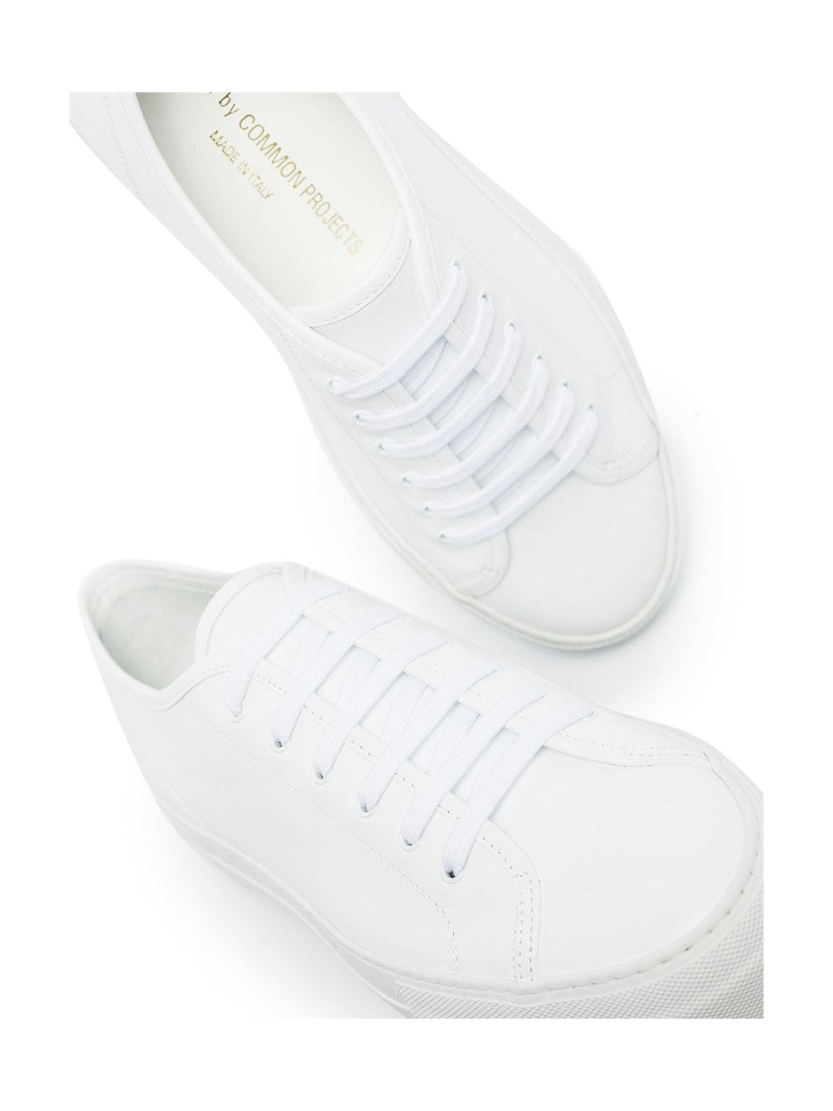 Step up your sneaker game with these Tournament Low Super Leather Sneakers. The classic white leather design and gold-tone number stamp add a touch of luxury to your everyday look, while the flatform sole provides comfort and style in one sleek package.