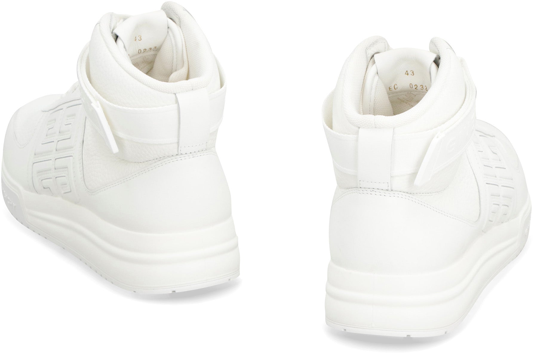 Step up your style game with these luxurious high-top sneakers. Crafted from premium pebbled leather with embossed side logos, these sneakers exude sophistication and elegance. The round toeline adds a sleek and modern touch, making them the perfect choice for fashion-forward individuals who appreciate quality and attention to detail.