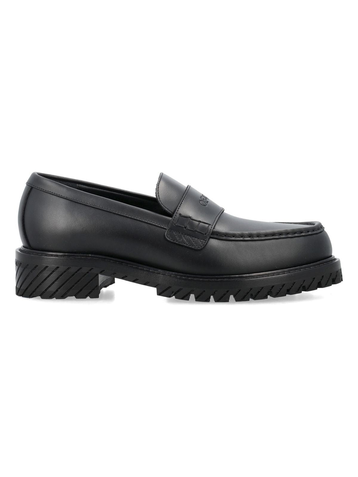 Step up your style game with these military loafers by Off-White. Featuring a classic logo etched across the upper panel and a signature diagonal rubber sole, these loafers are the perfect combination of fashion and function. With a 4 cm heel, they offer the perfect blend of comfort and style.