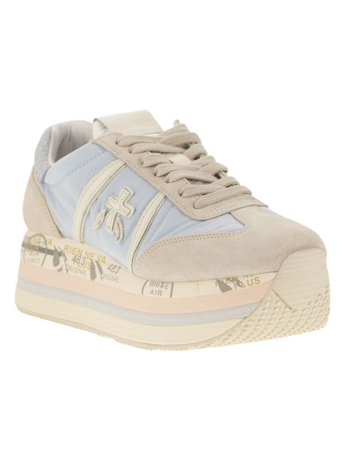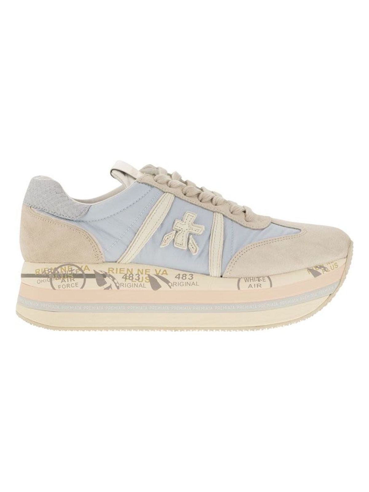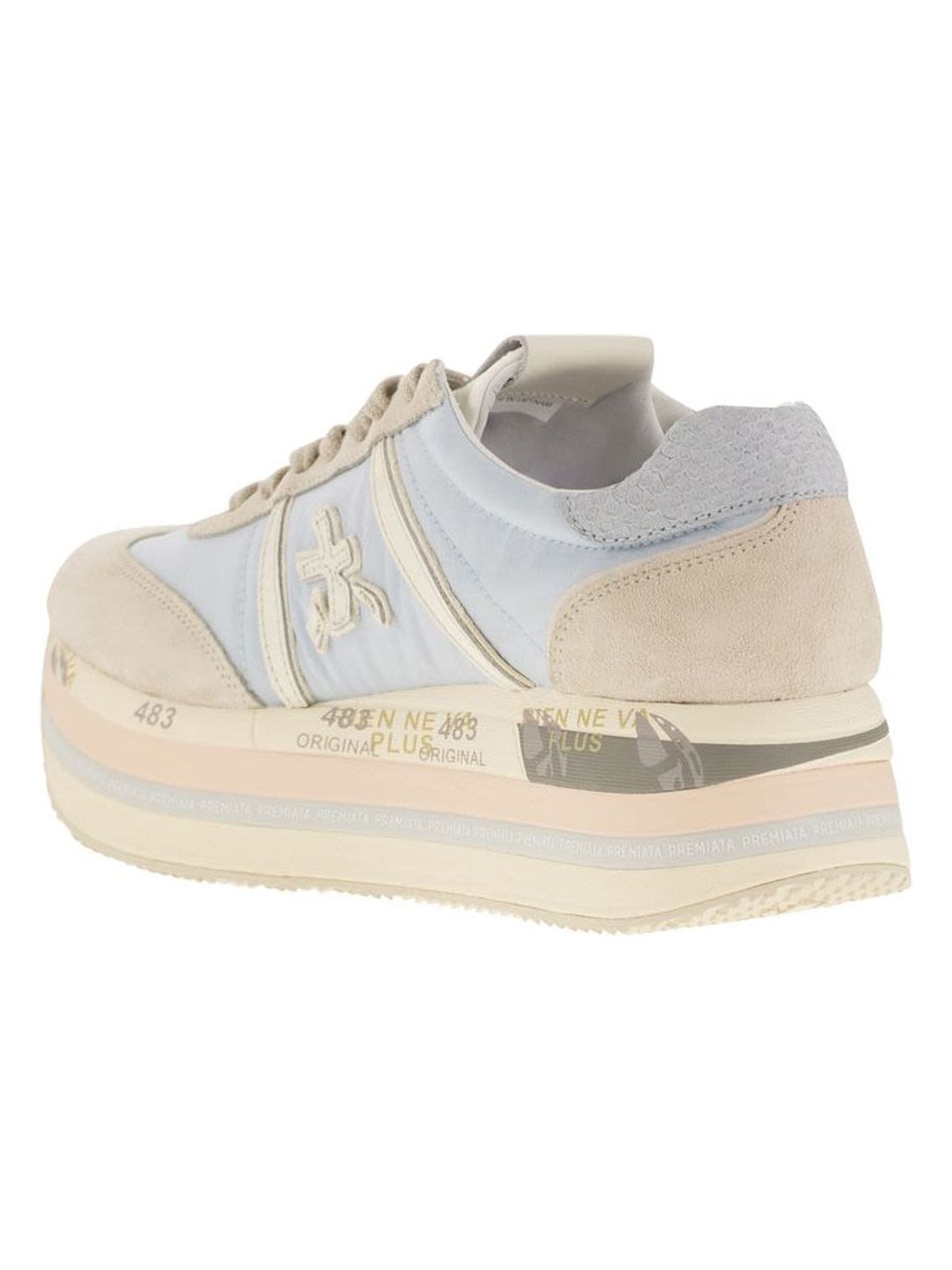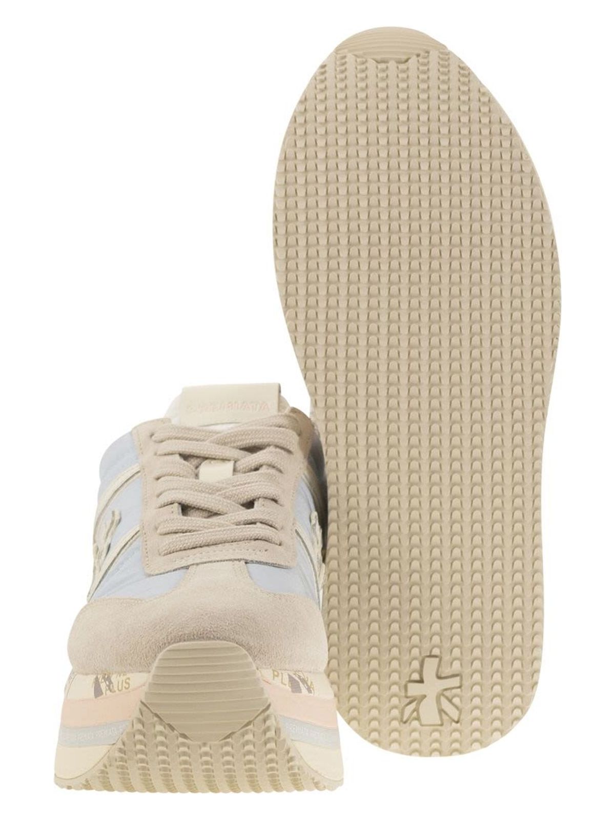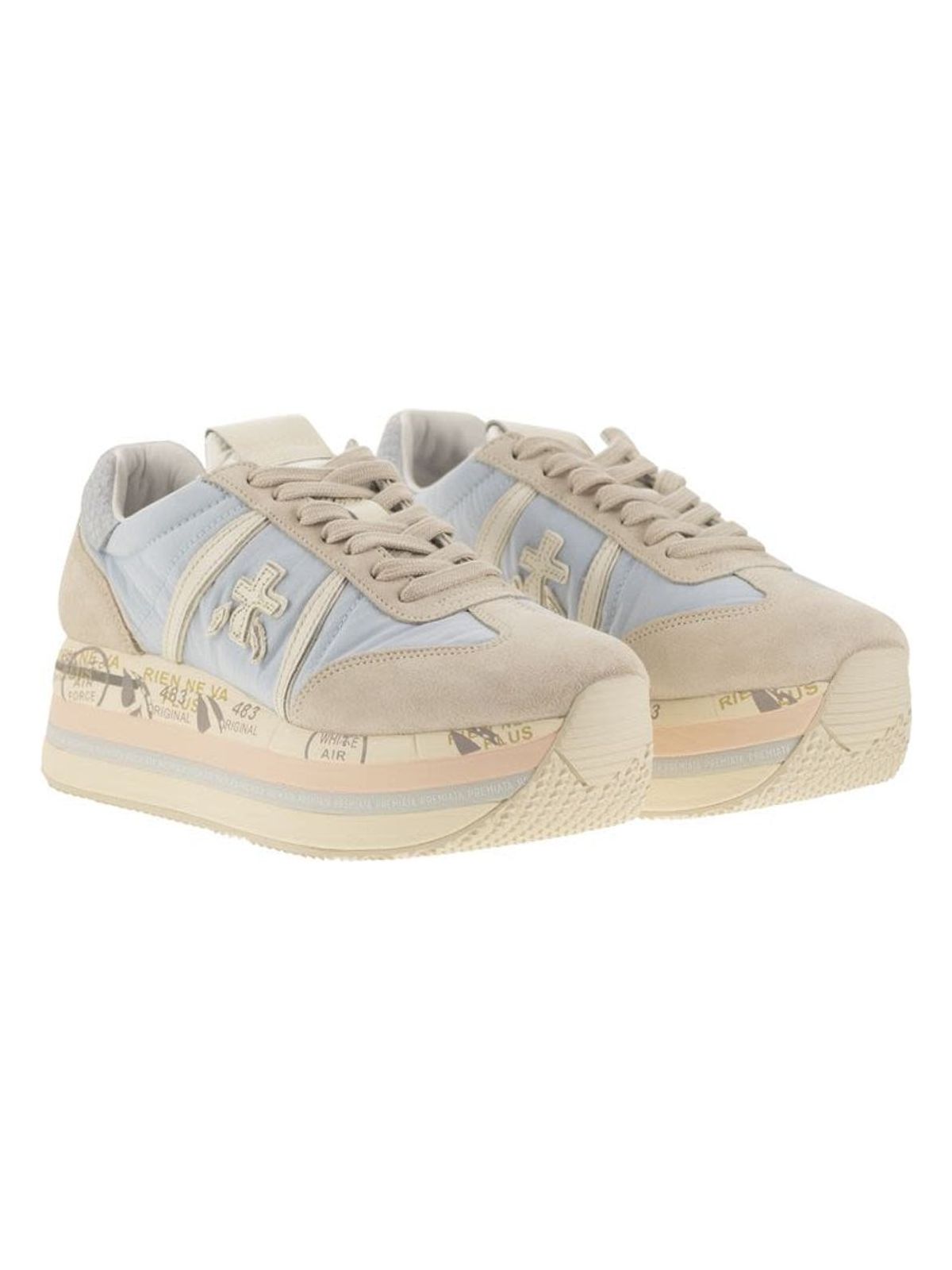 BETH TRAINERS WITH SUEDE AND LEATHER UPPER. COLOURED PLATFORM BOTTOM CUSTOMISED WITH PREMIATA LOGO SCREEN-PRINTING. - SIDE LOGO - LACES CLOSURE DESIGNER ID: BETH 6678 SOLE HEIGHT: 5.5 CM