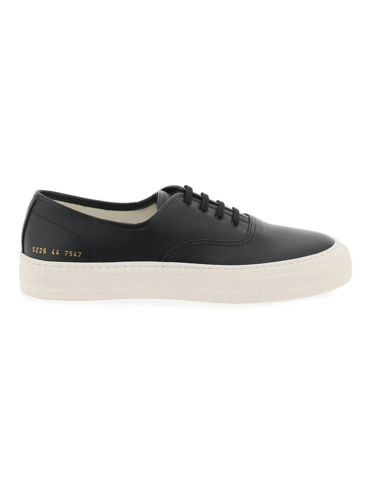 Step up your sneaker game with these hammered leather sneakers from Common Projects. The laminated identification number on the side adds a touch of urban edge to these sleek kicks. Plus, with a leather and fabric interior, removable insole, rubber sole, and spare laces, these sneakers are as practical as they are stylish.