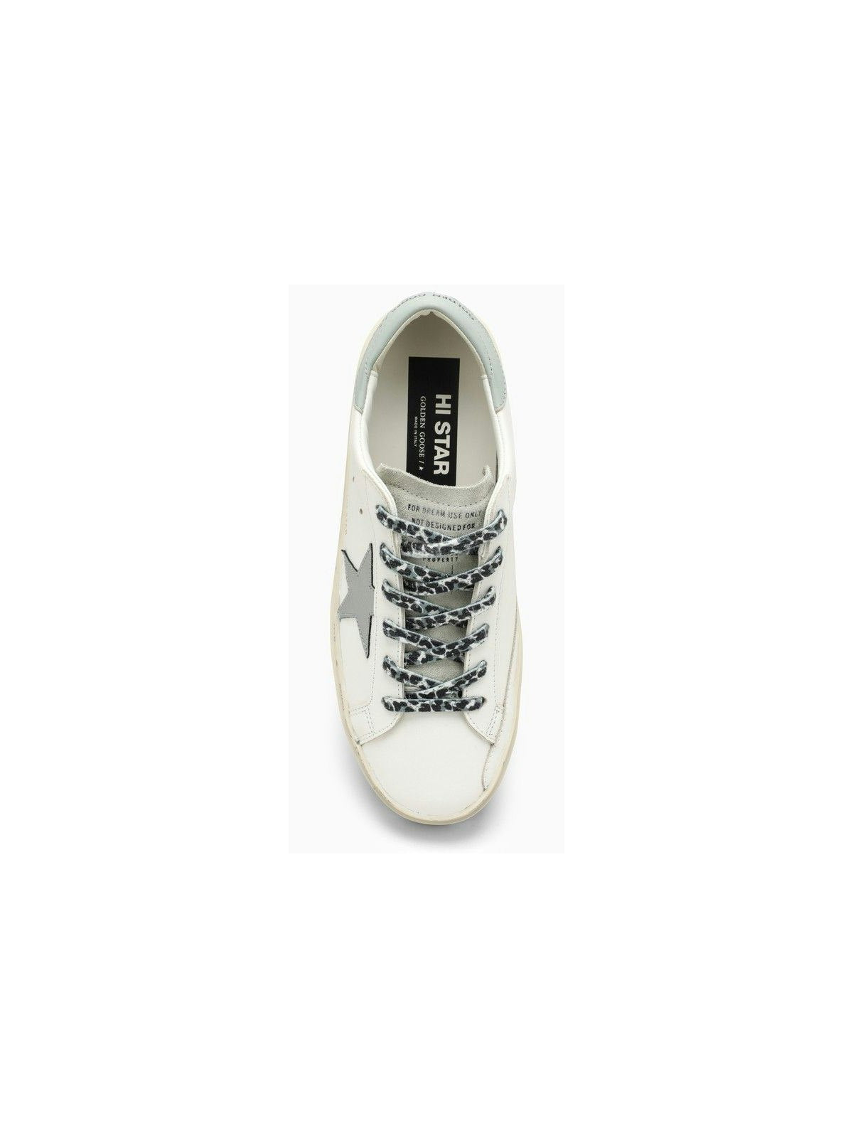 Step up your sneaker game with these white leather low top sneakers featuring a stylish rubber platform sole, lace-up fastening with a unique spotted print, and an iconic star stitched on one side. The grey leather heel with logo and vintage effect workmanship adds a touch of sophistication to these cool kicks.