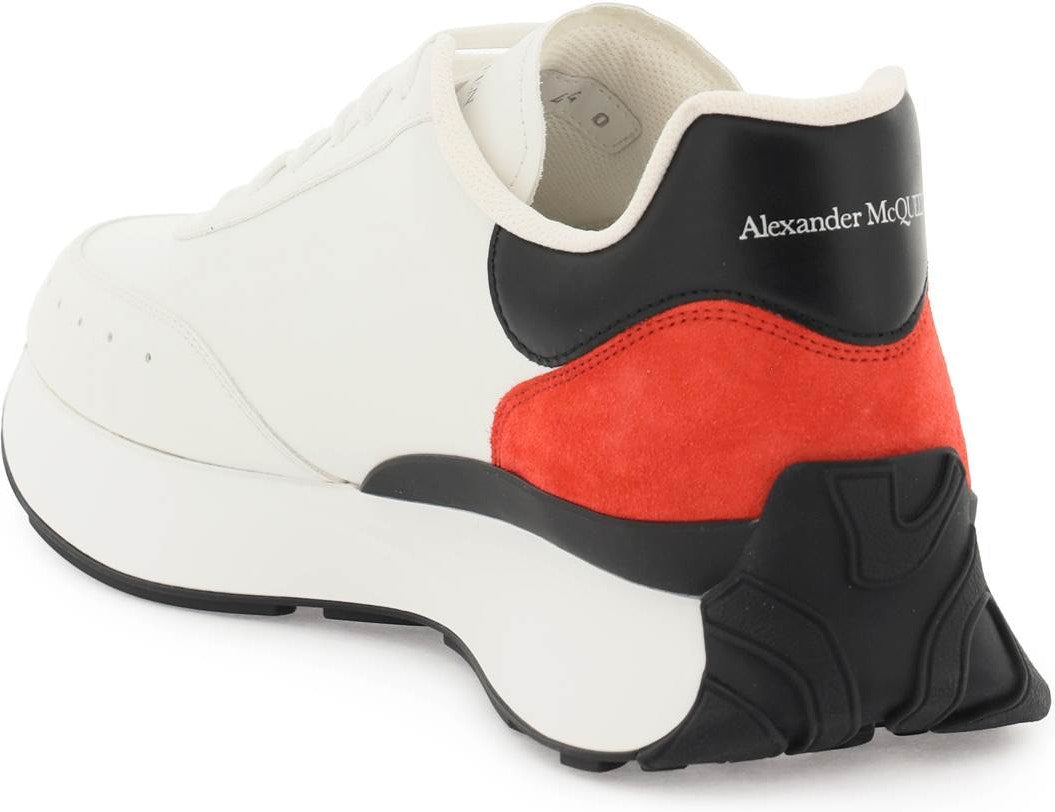 Step up your sneaker game with these Alexander McQueen Sprint Runner sneakers. Made of luxurious nappa leather with embossed monogram detailing, contrasting suede inserts, and oversized rubberized runner soles, these sneakers are the perfect mix of style and comfort. Whether you're hitting the streets or just running errands, these sneakers will take you there in style.