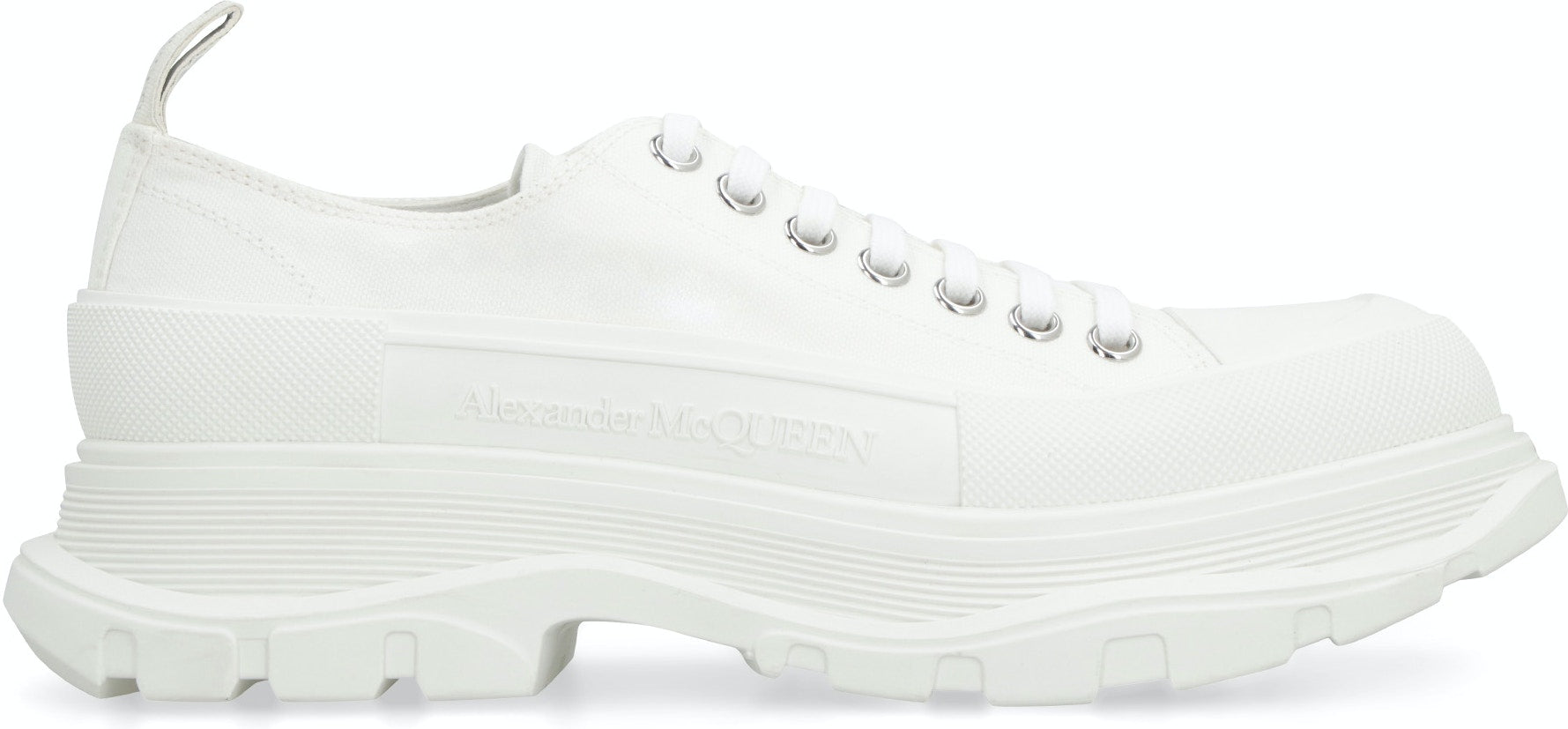 Step up your sneaker game with these bold and stylish Tread Slick Sneakers. Crafted from durable cotton canvas with a tonal rubber toe and base, these sneakers are designed to make a statement. The embossed logo on the side, silver-tone metal eyelets, and back logo tab add a touch of luxury, while the leather lining and rubber sole ensure ultimate comfort and support. Complete with extra laces, these sneakers are a must-have for anyone looking to add a touch of edge to their footwear collection.