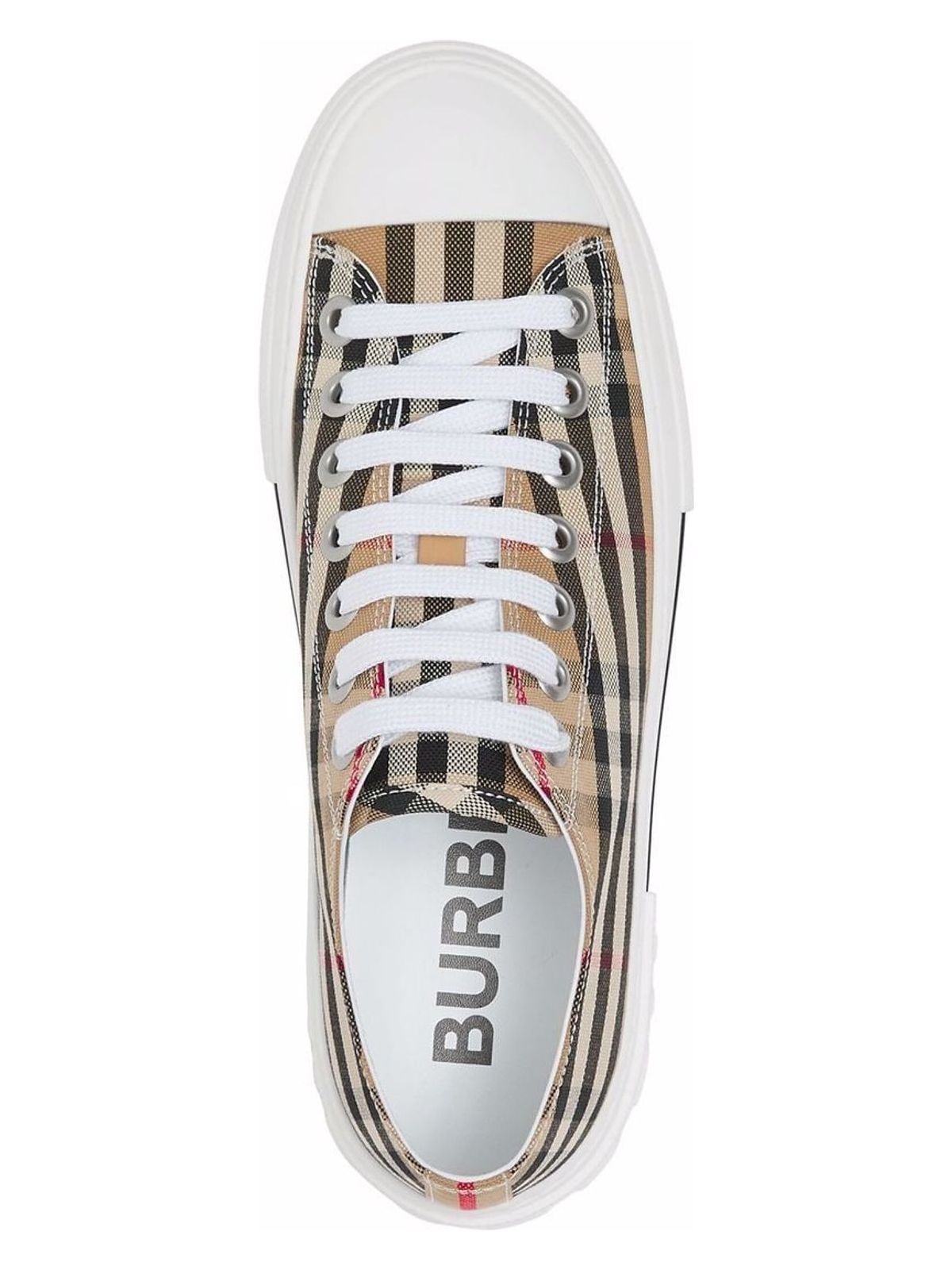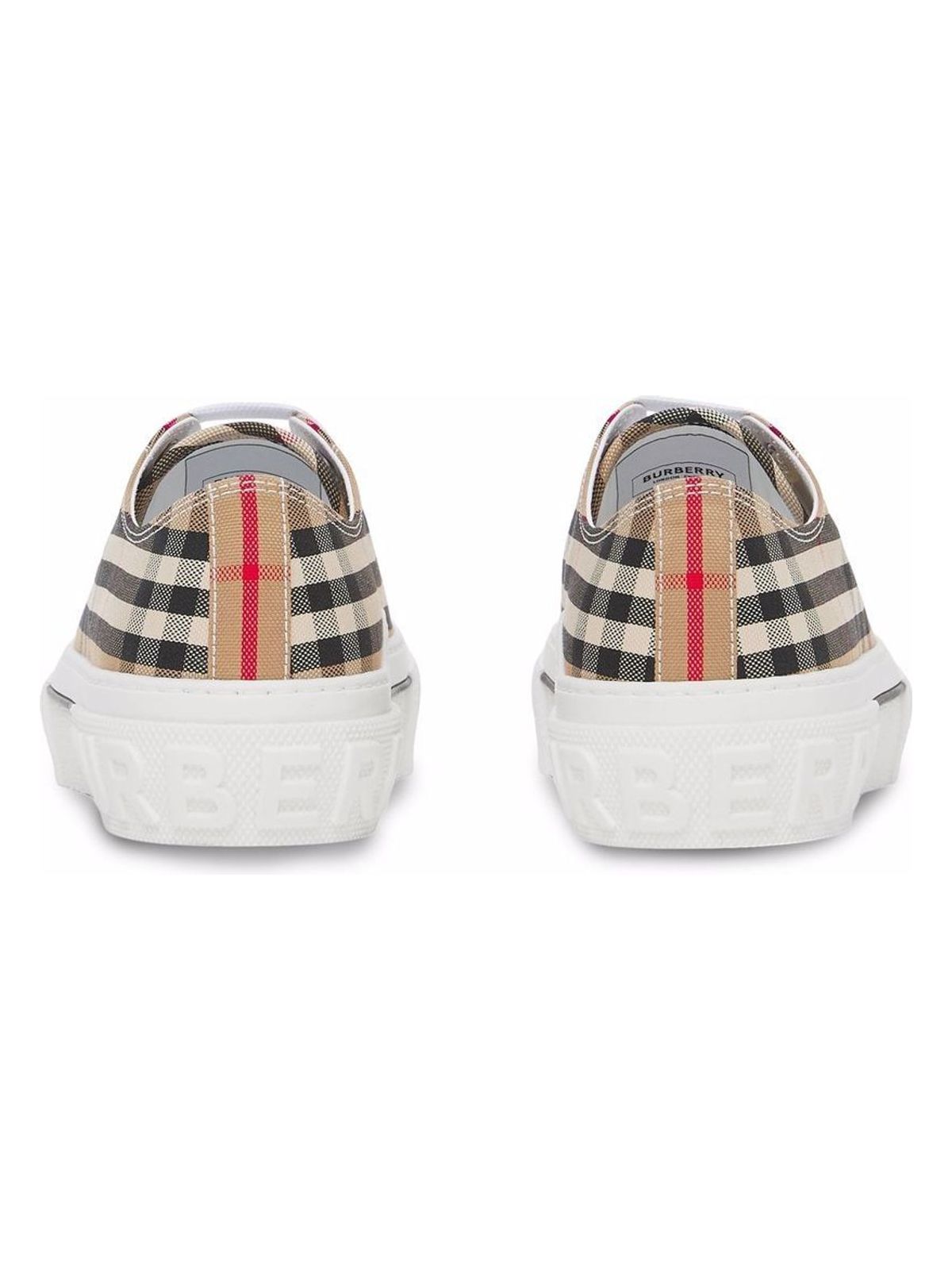 LOW TOP SNEAKERS IN COTTON CANVAS WITH ALL-OVER CHECK MOTIF IN THE SHADES OF BEIGE. ROUND TOE AND SOLE IN WHITE RUBBER. LACE-UP CLOSURE AND EMBOSSED BURBERRY LOGO AT THE BACK. ITA SIZE. SIZE NATIONALITY: IT