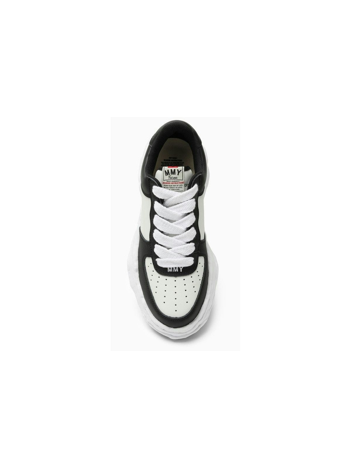 - Black and white leather upper