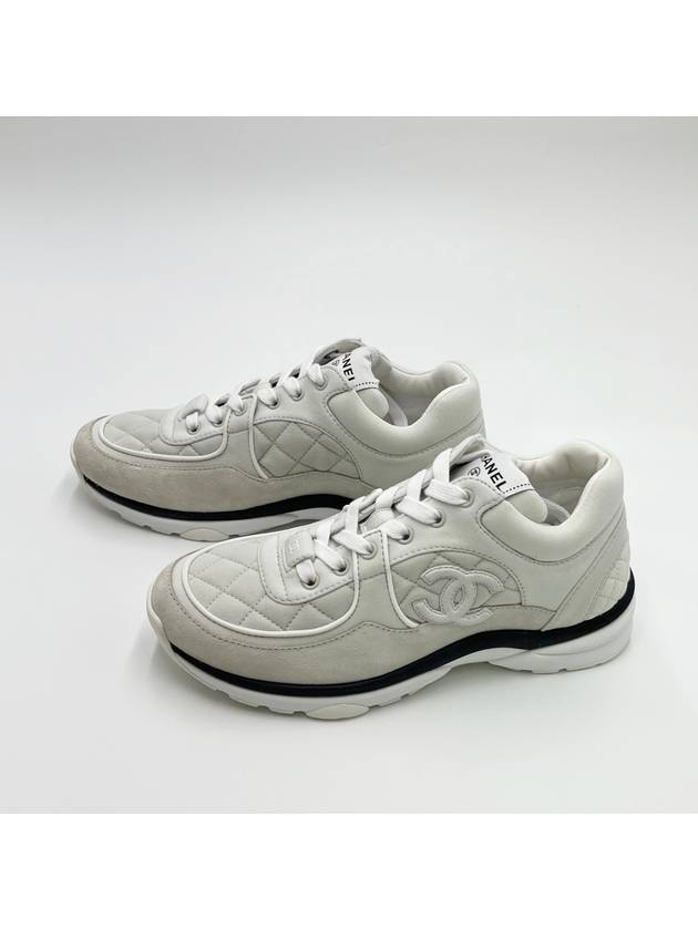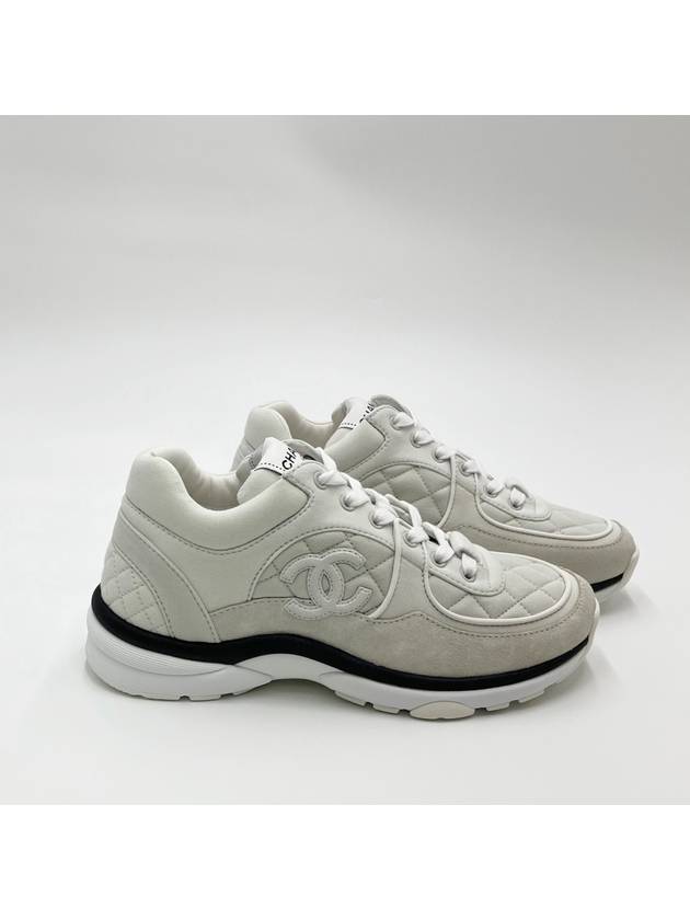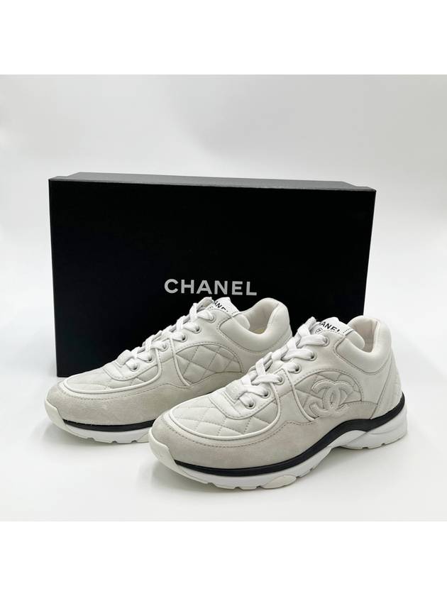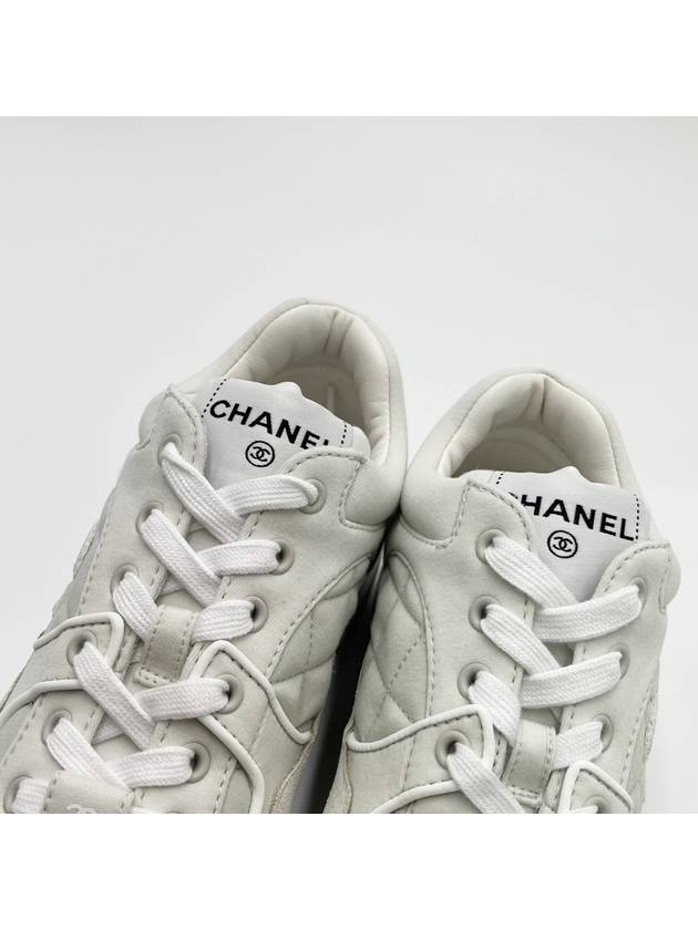 CC Logo Fabric Suede Low-Top Sneakers Light Grey Chanel