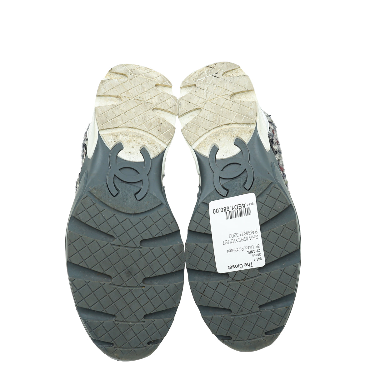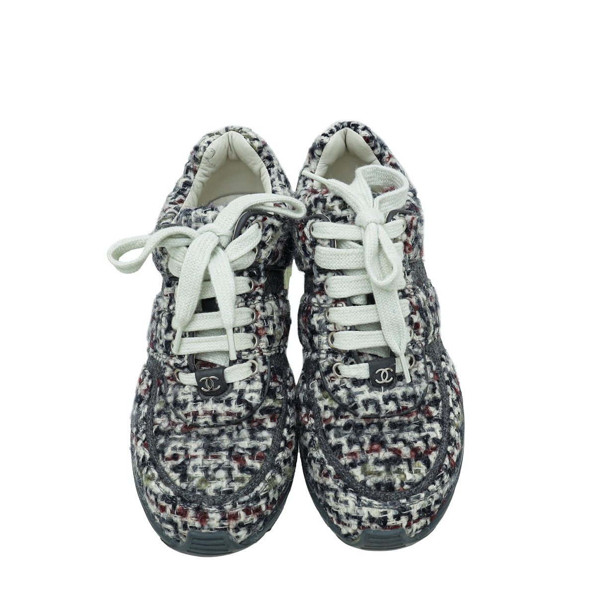 Chanel Grey CC Wool Tweed Trainer Sneaker 36