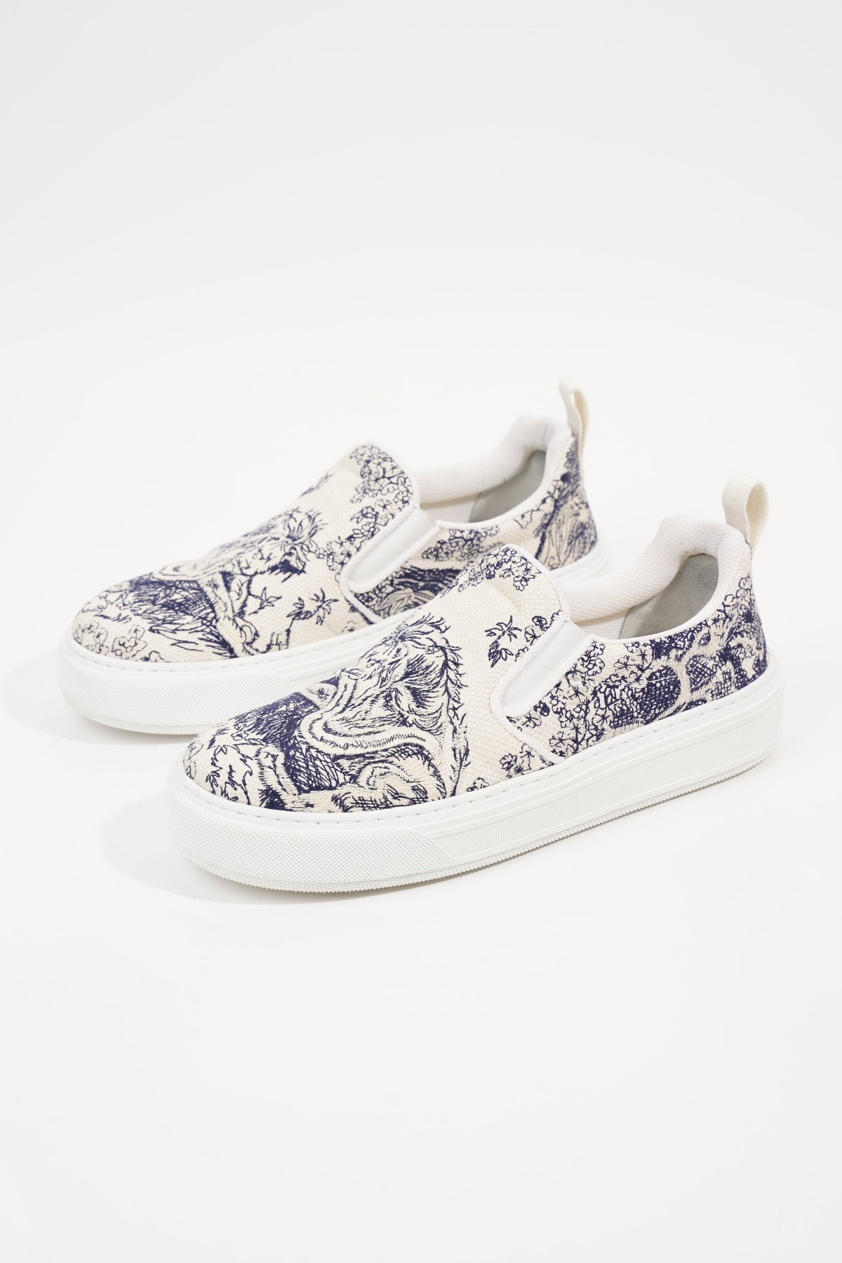 Christian Dior Womens Toile De Jouye Slip On Sneaker Off White Blue EU 39.5 / UK 6.5