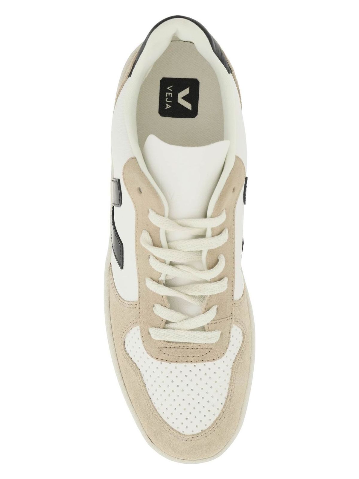 V-10 SUEDE AND GRAINED LEATHER SNEAKERS BY VEJA WITH SIDE CONTRASTING RUBBER V MONOGRAM. LOGO EMBOSSED ON THE TONGUE AND PRINTED ON THE CONTRASTING HEEL TAB, INTERIOR IN ECO-SUSTAINABLE FABRIC WITH REMOVABLE INSOLE, NATURAL RUBBER SOLE FROM THE AMAZONIAN FOREST.
