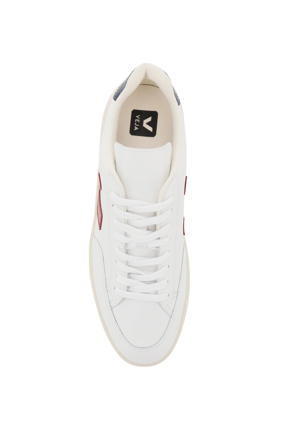 Step up your sneaker game with these VEJA V-12 leather sneakers. Featuring a stylish V monogram on the sides and a contrasting heel tab with logo print, these sneakers are the perfect blend of fashion and function. Plus, with an eco-sustainable fabric interior and a natural rubber sole from the Amazon forest, you can feel good about your footwear choice.