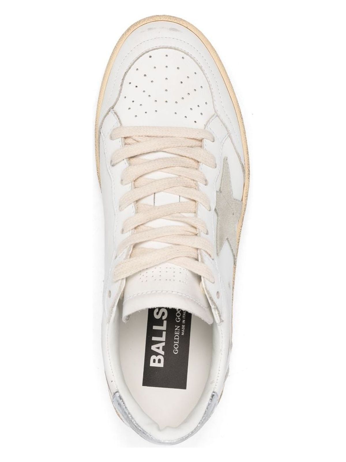 Step up your sneaker game with these off-white, light beige, and silver-tone calf leather low-top sneakers from Golden Goose. With a signature star patch, logo patch, and perforated detailing, these sneakers are the perfect blend of style and comfort. Featuring a round toe, front lace-up fastening, branded insole, and flat rubber sole, they're a versatile addition to any casual outfit.