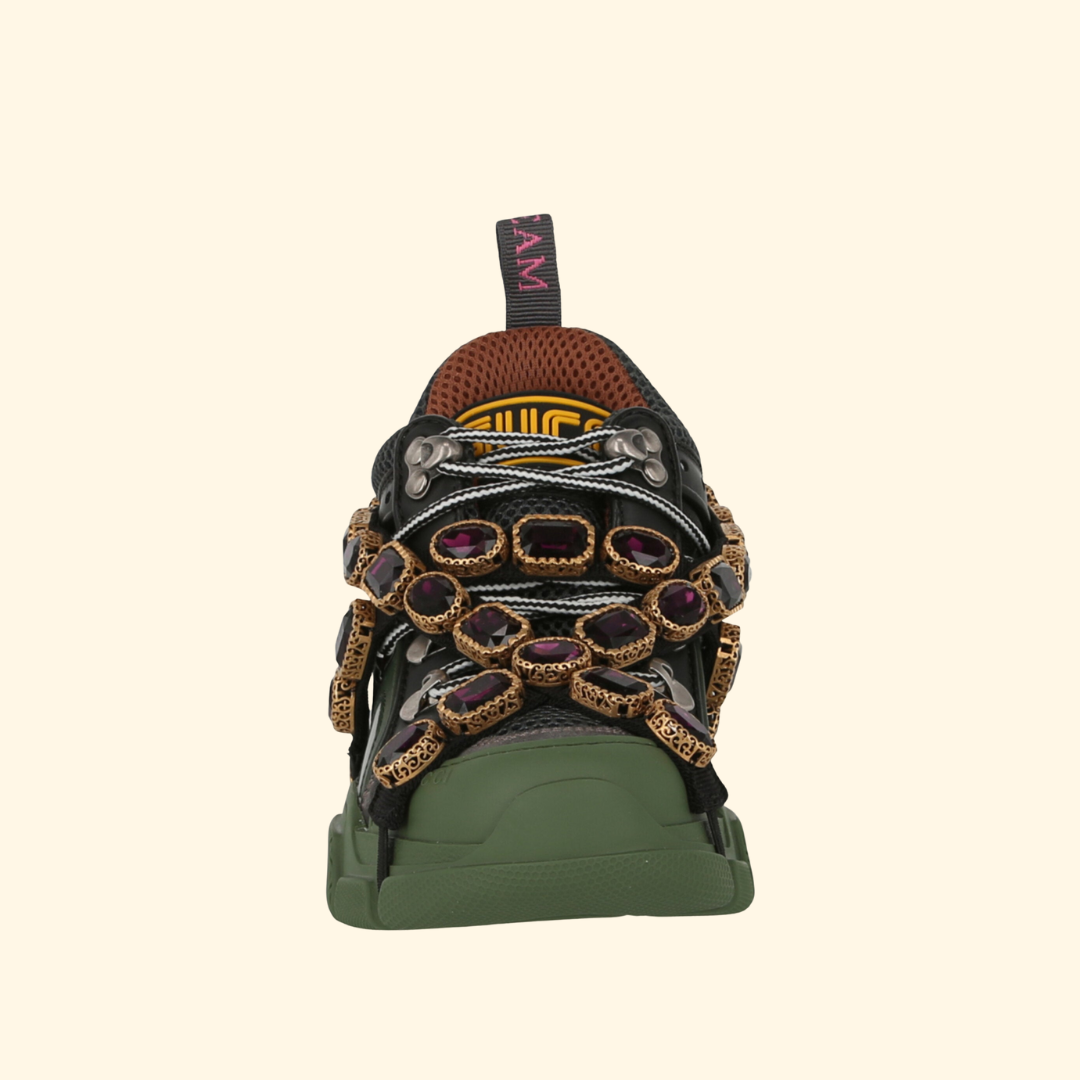 Gucci Flashtrek Chunky Leather Sneakers, Green, Brand New