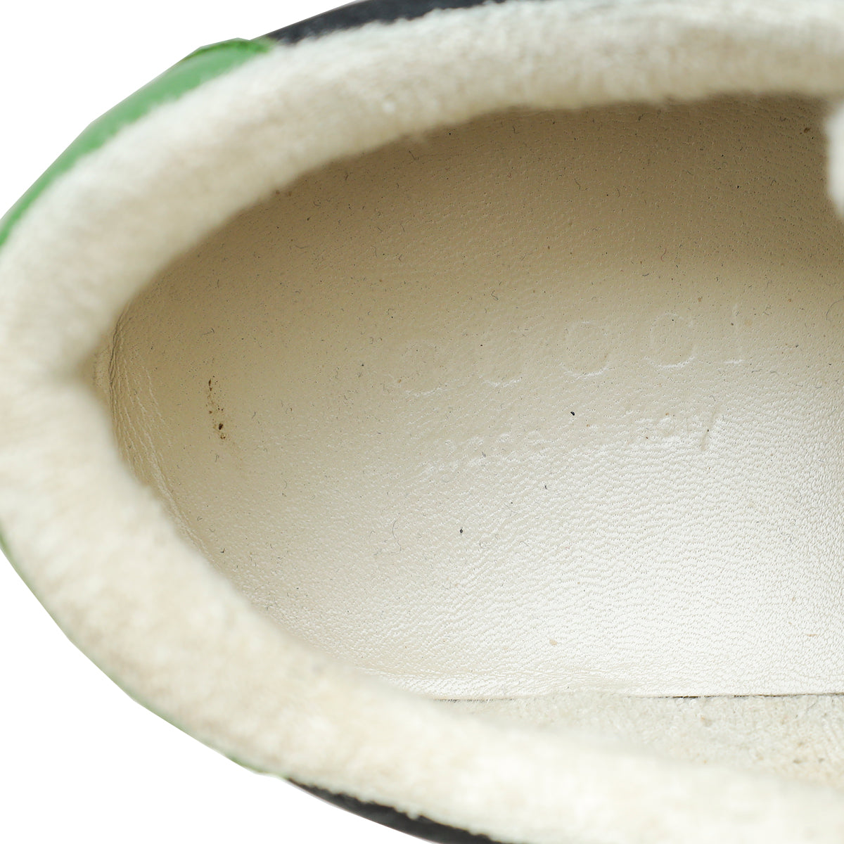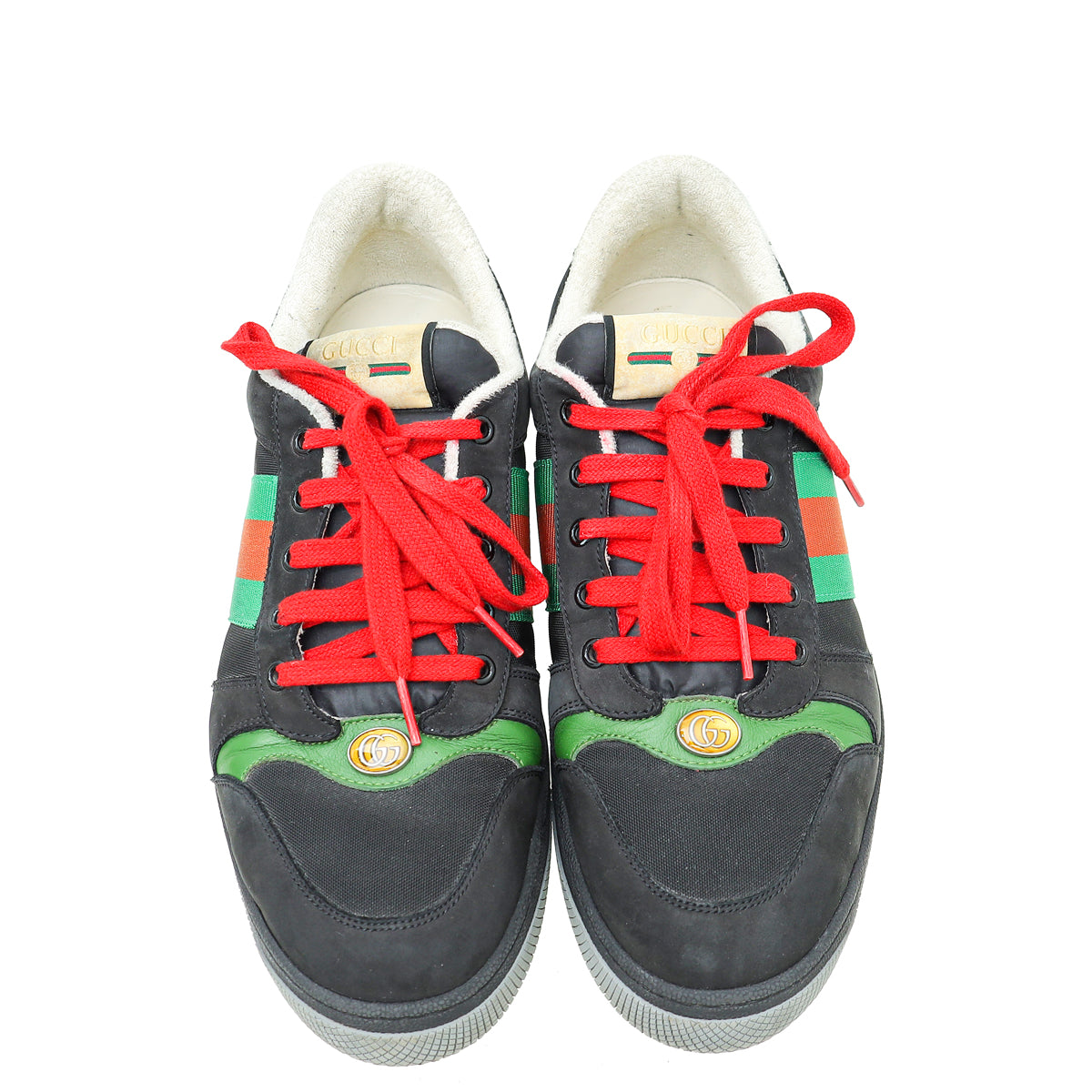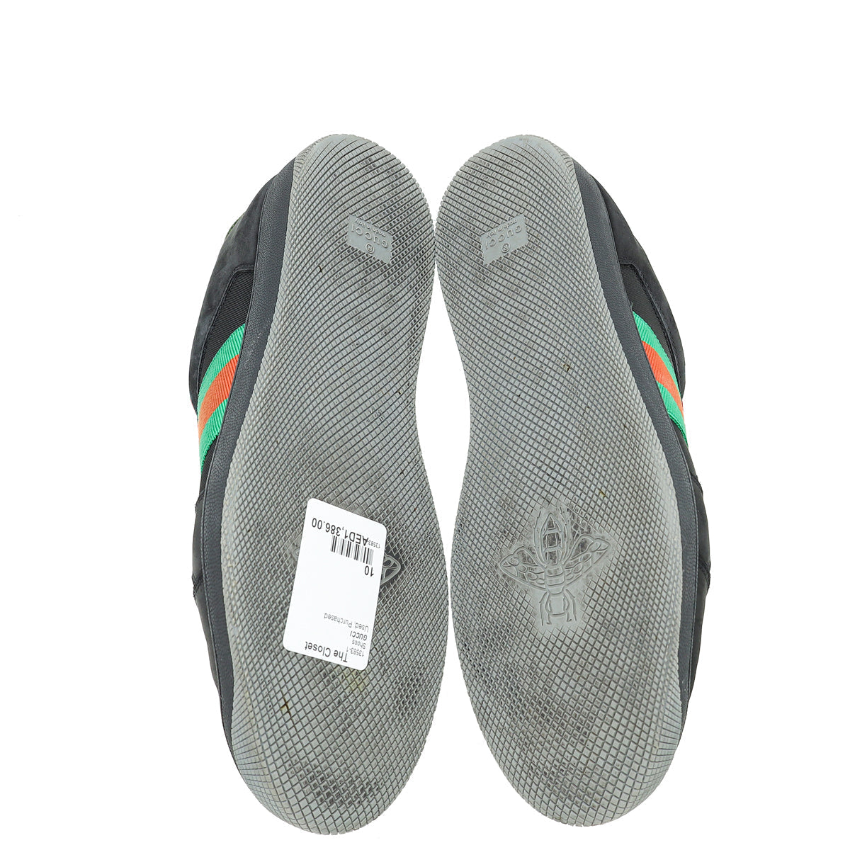 - Material: Black Suede and Canvas with Green/Red Web and Green Leather Trim