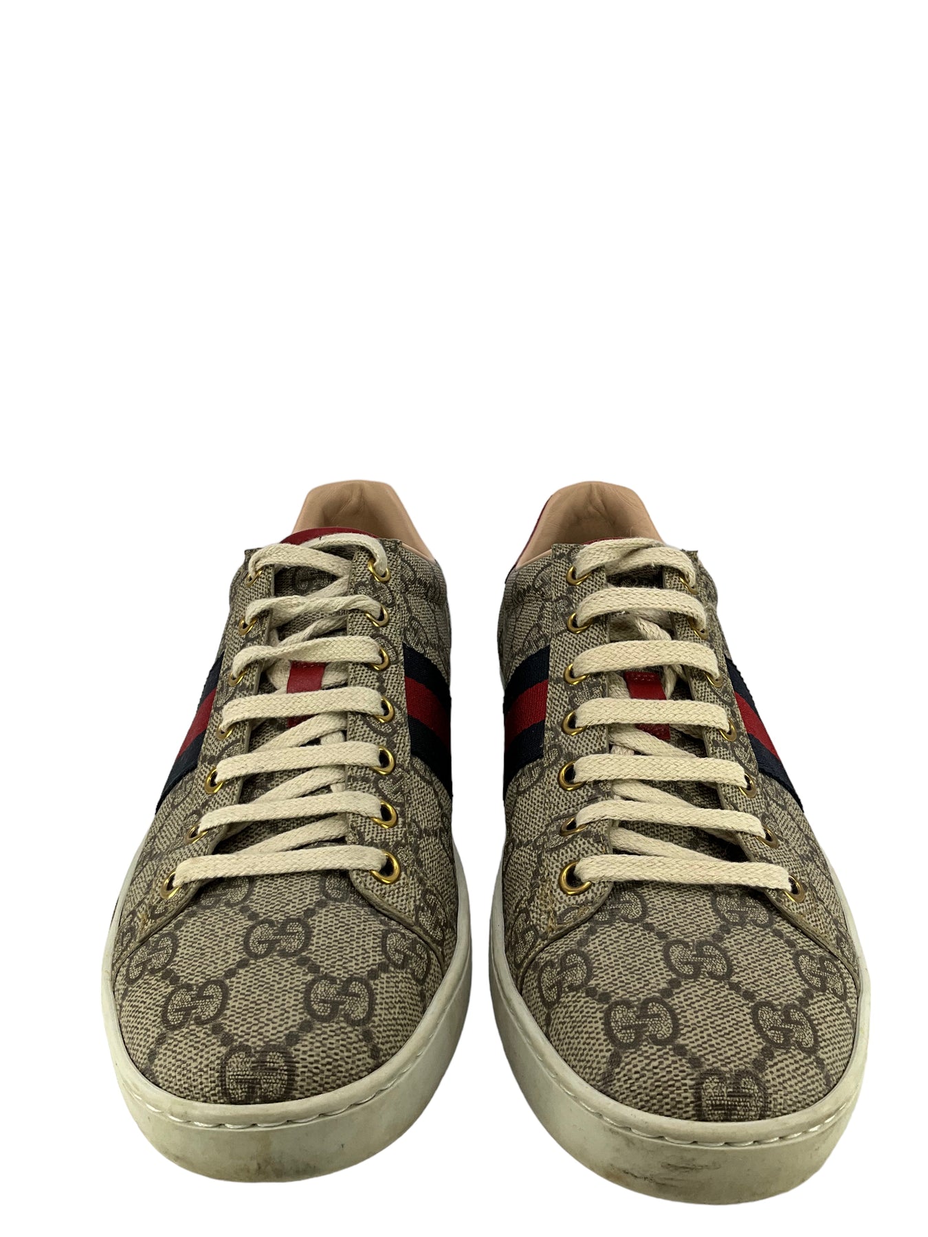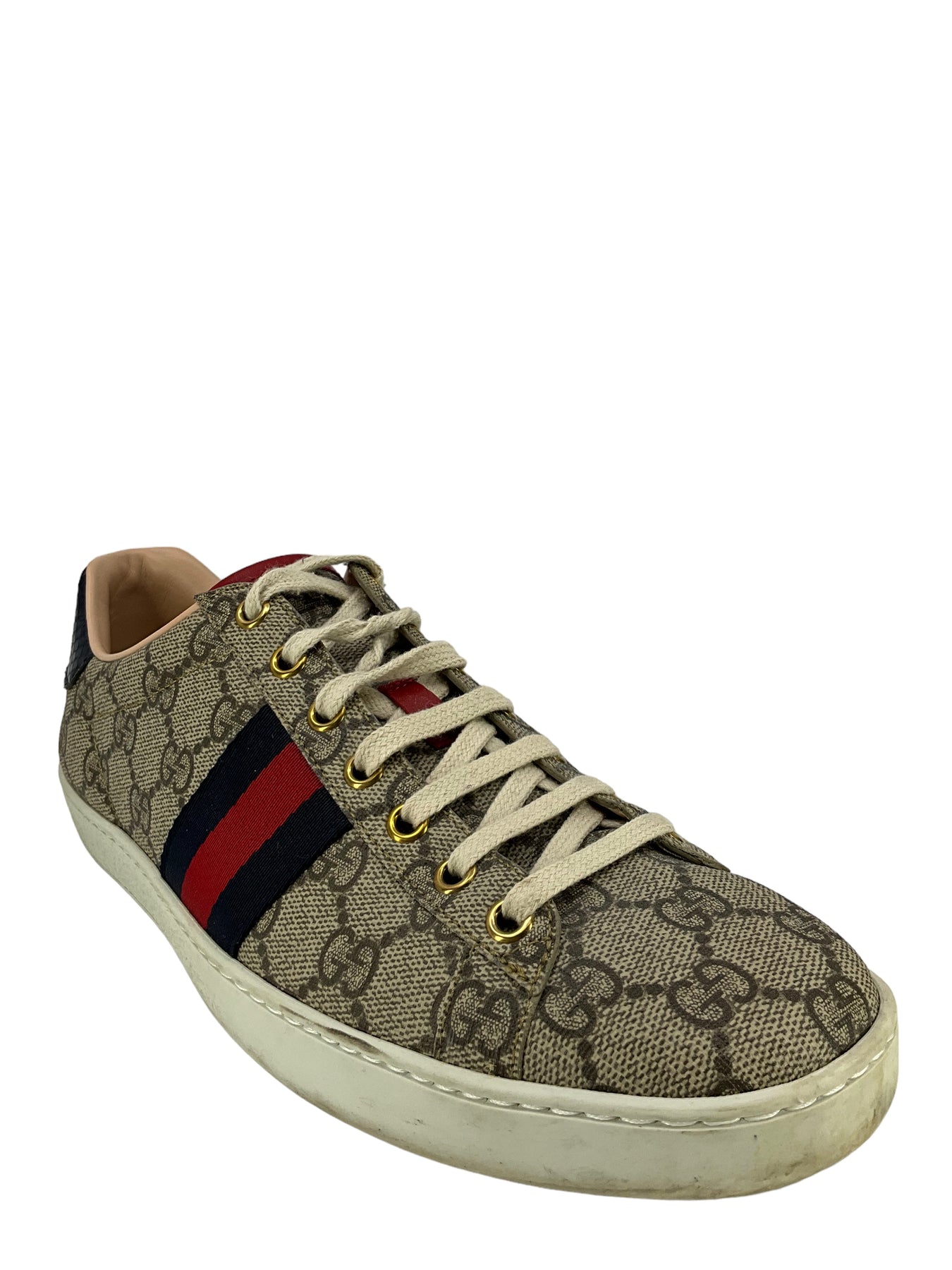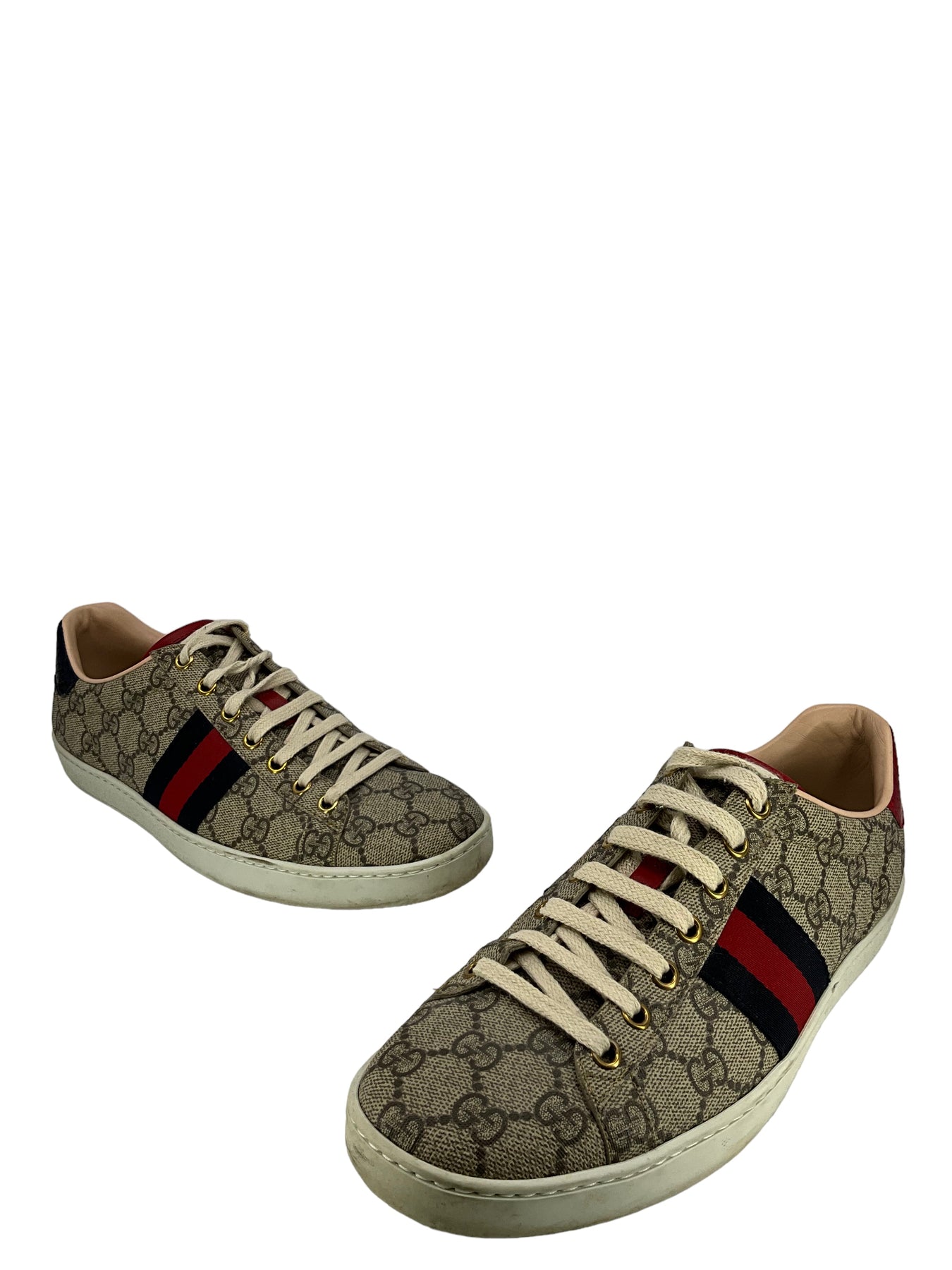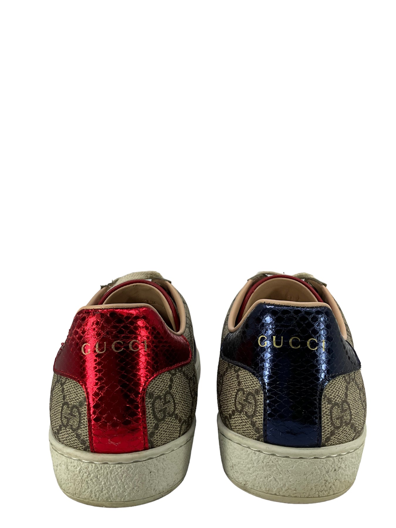 We ity of these gorgeous Gucci sneakers, size 8.5 I IT 38.5, crafted from canvas. These beautiful sneakers feature classic GG monogram canvas, stripe webbing, contrast snakeskin, rubber soles, and leather insoles.