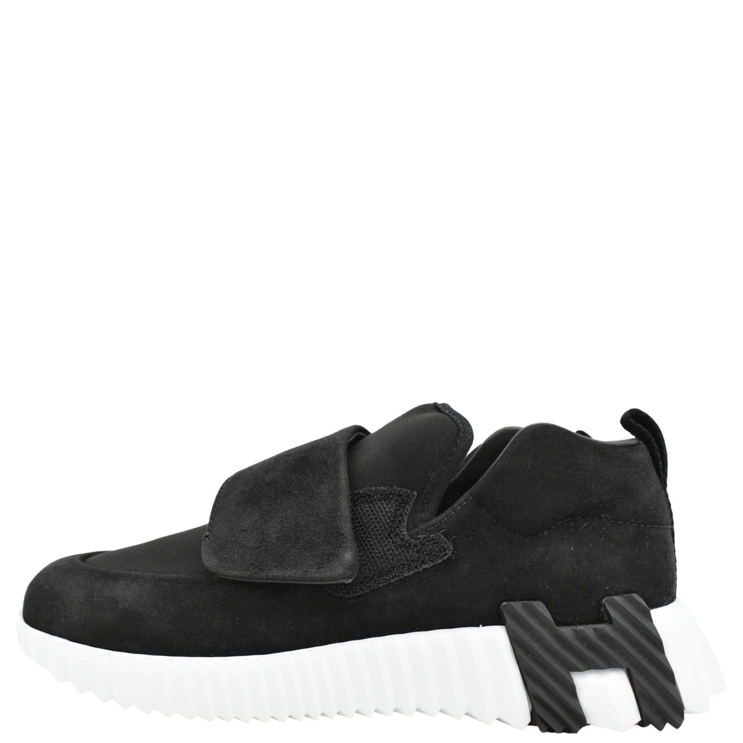 The "HERMES Low Top Bouncing Suede Sneaker" in Black, Size 34, combines luxury and comfort. Made from high-quality leather, these sleek sneakers feature a modern design with Hermes' signature craftsmanship, perfect for casual elegance.