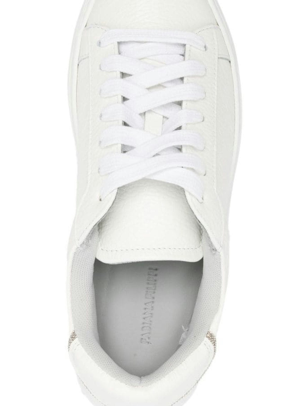 WHITE LEATHER GRAINED TEXTURE BEADED TRIM DETAIL ALMOND TOE FRONT LACE-UP FASTENING BRANDED INSOLE FLAT RUBBER SOLE