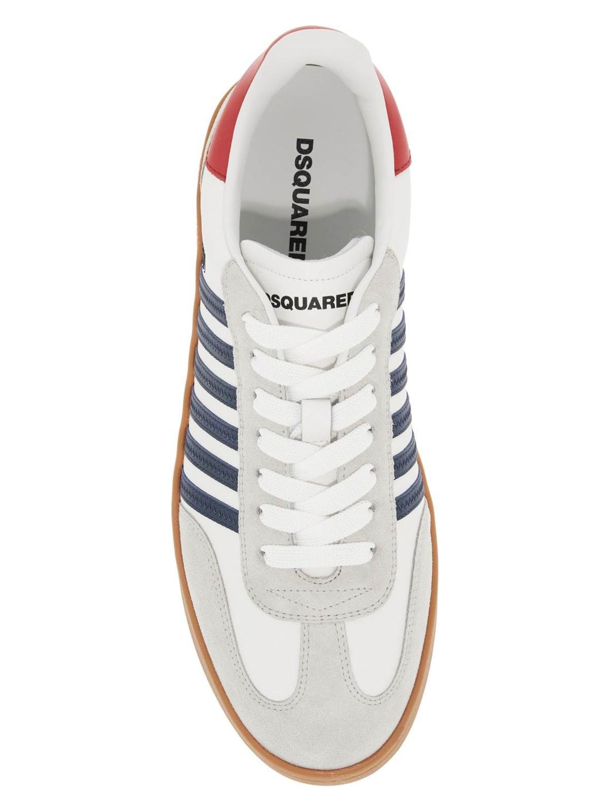 BOXER SNEAKERS BY DSQUARED2 MADE OF SMOOTH LEATHER WITH SUEDE DETAILS AND CHARACTERIZED BY CONTRASTING STRIPES STITCHED TO THE SIDES. CANADIAN LEAF PRINTED ON THE CONTRASTING HEEL TAB, LETTERING LOGO PRINT ON TONGUE, NAME OF ONE OF THE TWO DESIGNERS EMBROIDERED ON THE OUTER SIDE, TERRY-LINED INTERIOR WITH REMOVABLE LEATHER INSOLE. THE THICK MIDSOLE CREATES A PLATFORM LOOK, WHILE THE RUBBER OUTSOLE FEATURES A SLIP-RESISTANT TREAD.