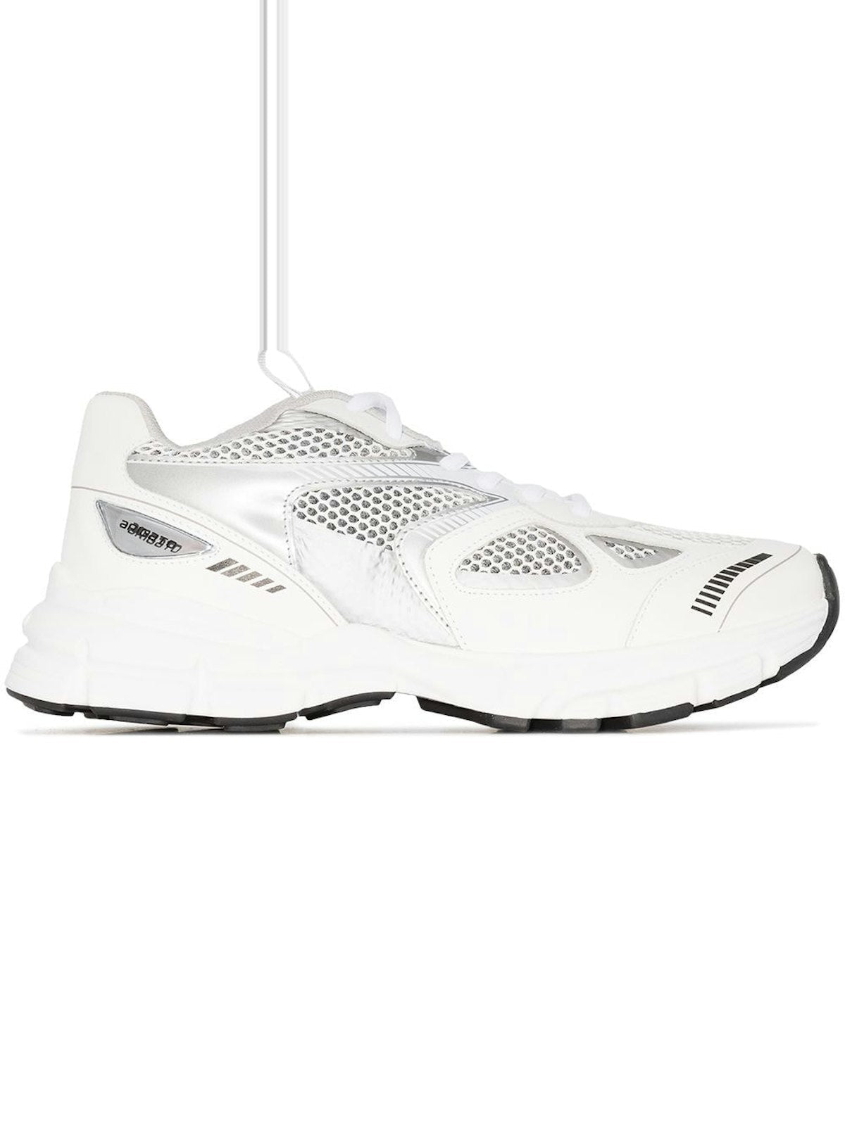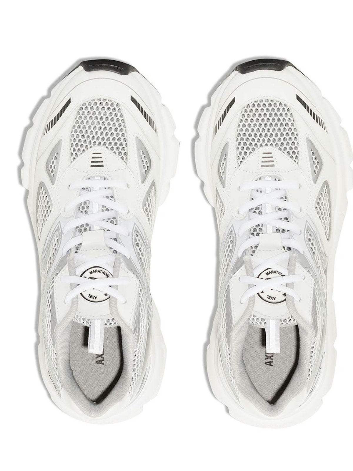 WHITE AND SILVER CRAFTED FROM LEATHER AND MESH EMBOSSED LOGO AT HEELS LOGO PATCH AT SIDES LOGO-APPLIQUÉD TONGUES WITH LOOPS LACE-UP FRONT FASTENINGS CHUNKY RUBBER SOLES