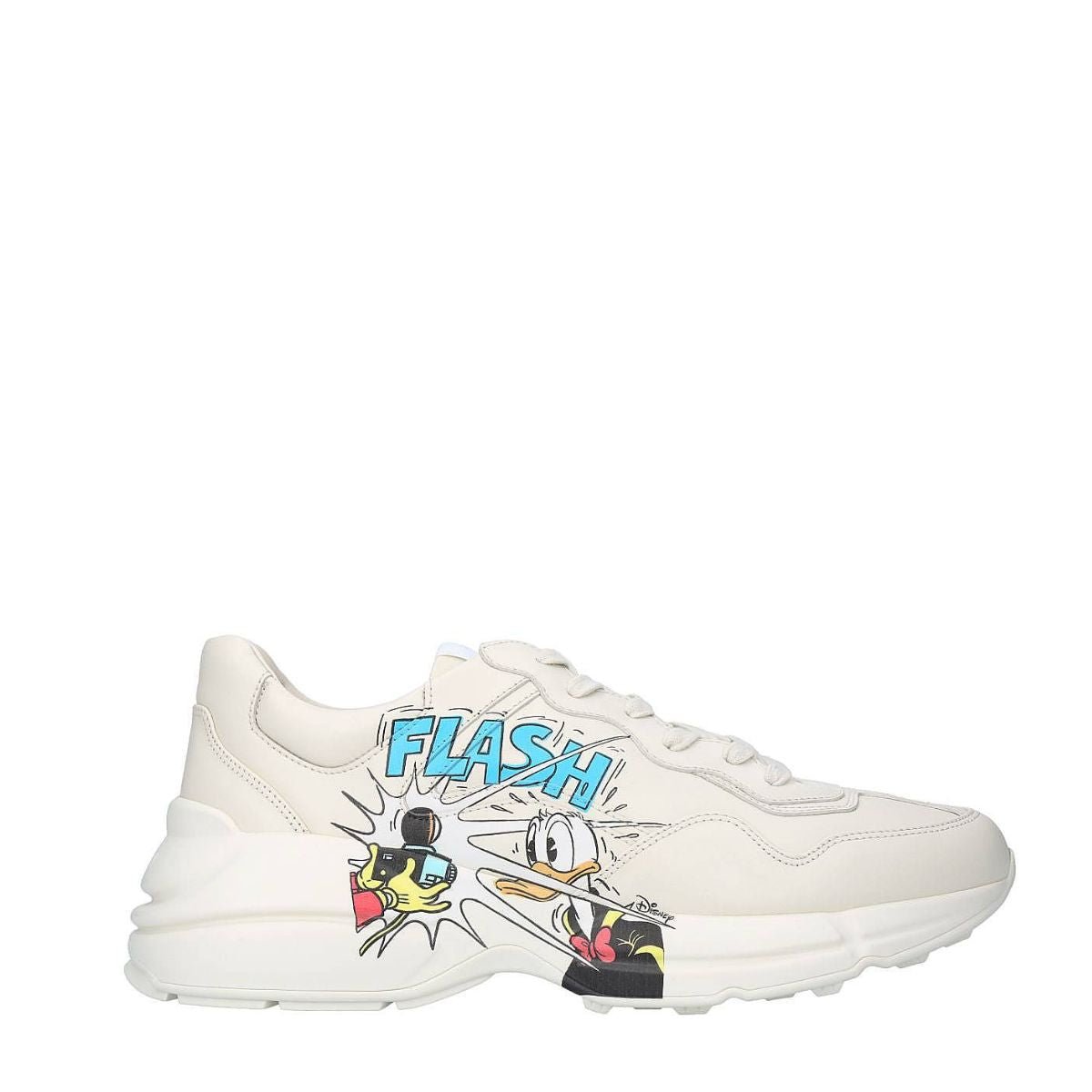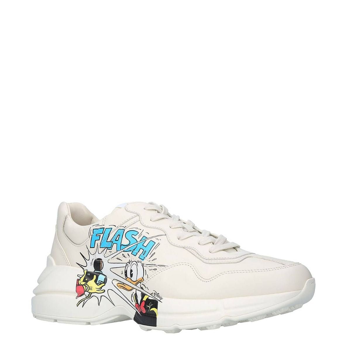 Crafted from smooth white leather, these sneakers featuring a round toe, a lace-up front fastening, a ridged rubber sole, a logo patch at the tongue, and Donald Duck detail.