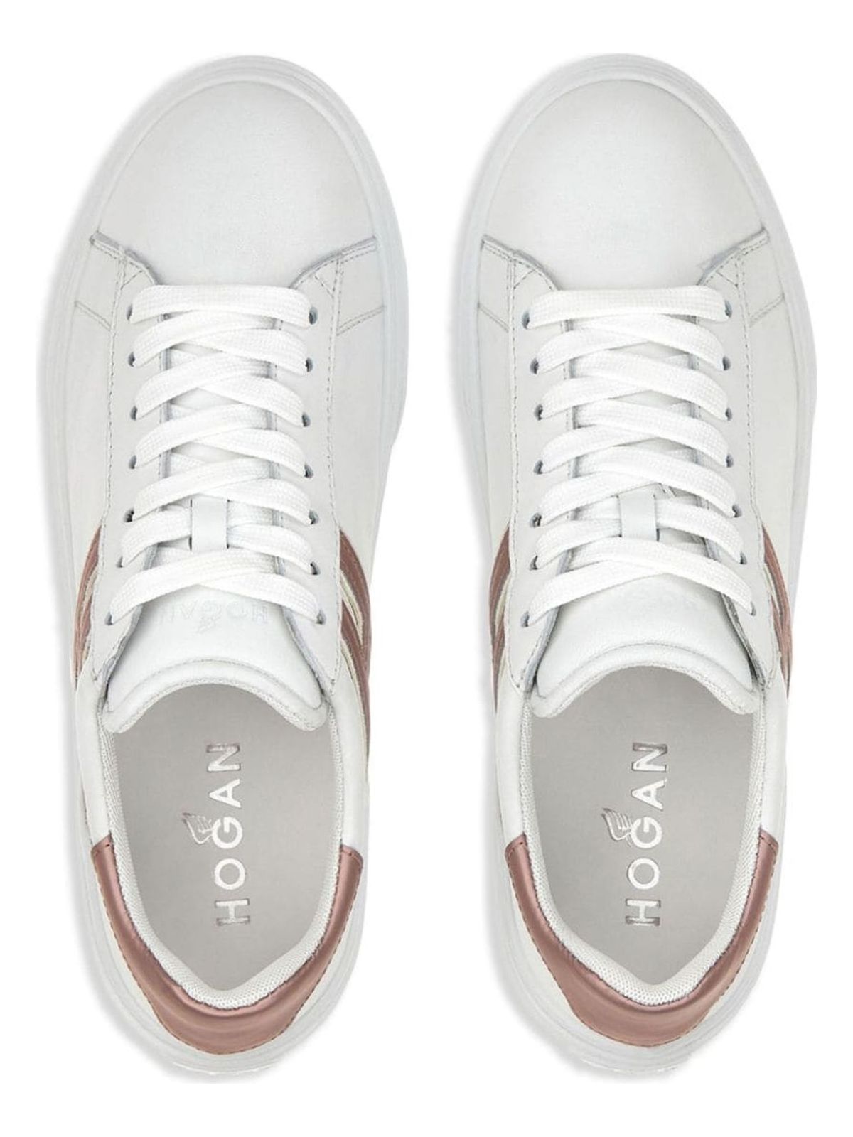 Step up your sneaker game with these versatile leather sneakers from Hogan. With a stylish mix of white and blush pink calf leather, these sneakers feature a logo patch on the side, a contrasting heel counter, and a front lace-up fastening for a trendy yet comfortable look.