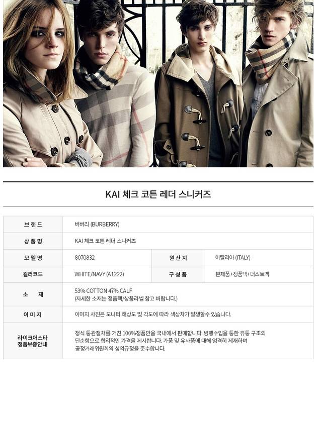 Top Quality Burberry Kai Check Cotton Leather Low Top Sneakers White