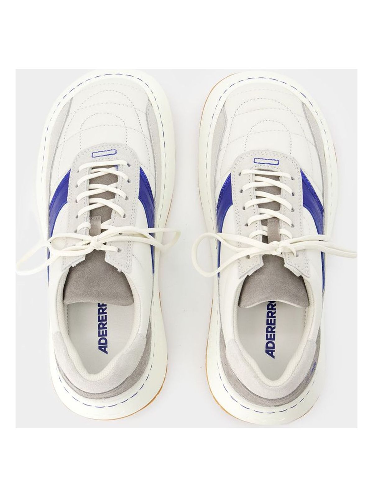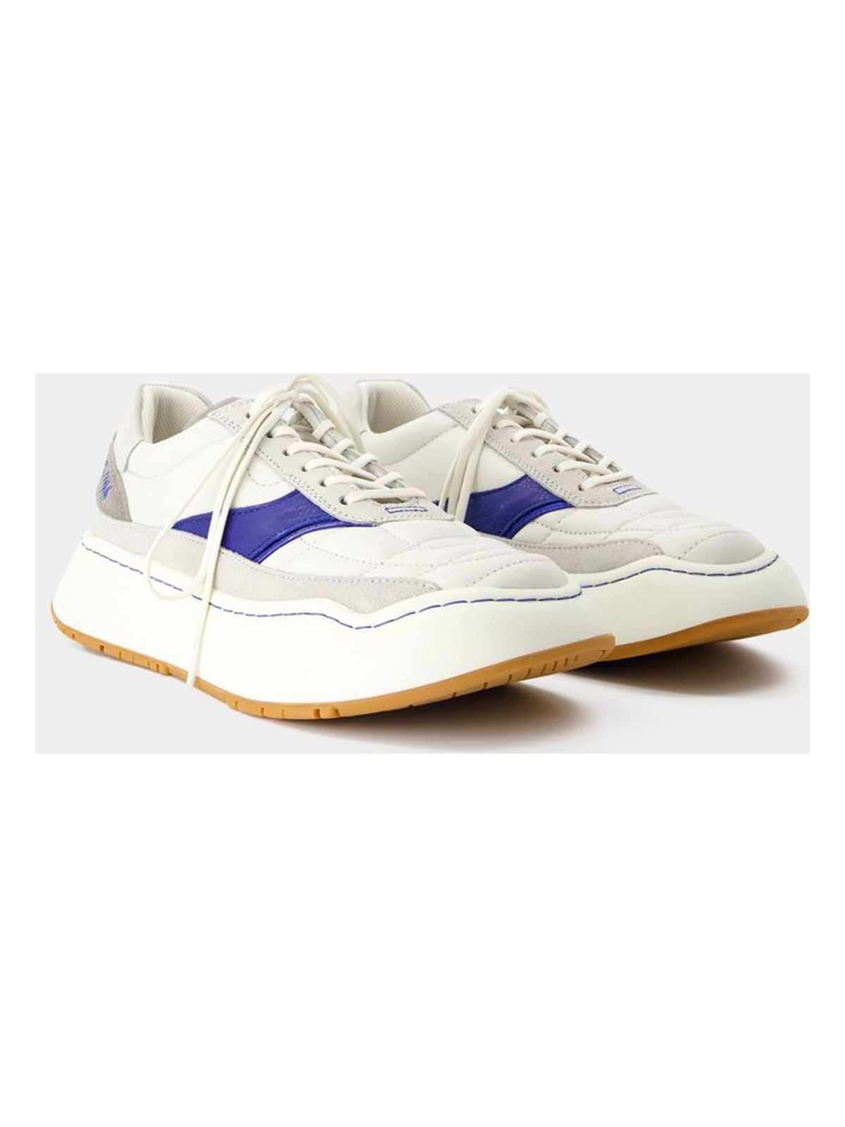 The Log Sneakers combine the classic design of low-top football shoes with unique, modern touches. The irregularly quilted leather on the toe and split shimmering leather on the sides add texture and style. A patterned detail on the counter and zigzag embroidery elevate these sneakers to the next level.