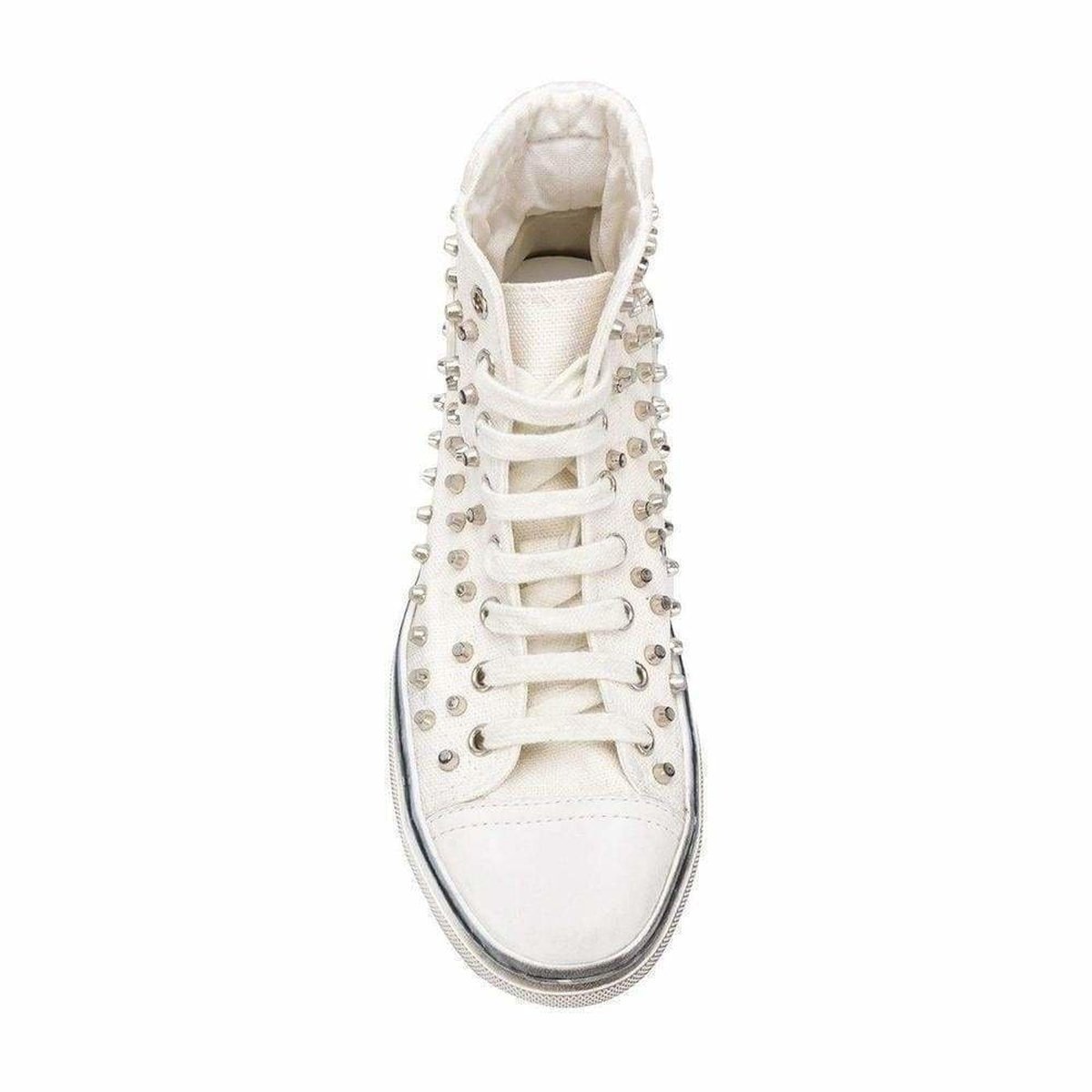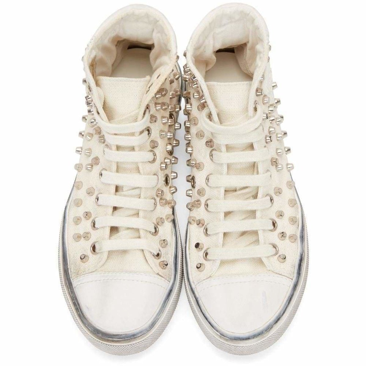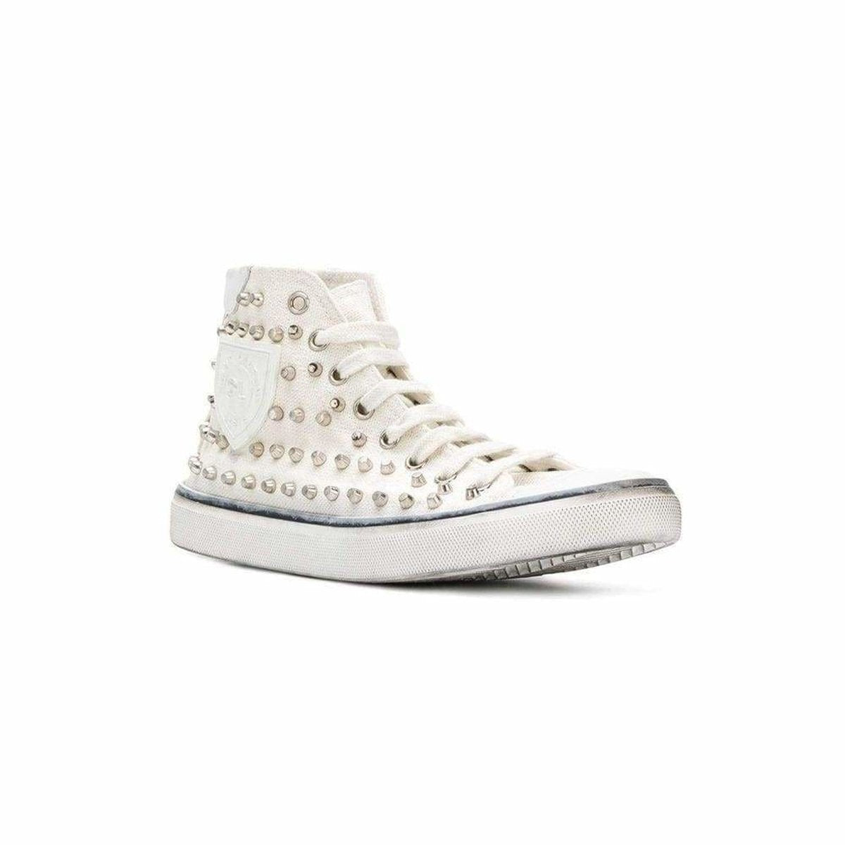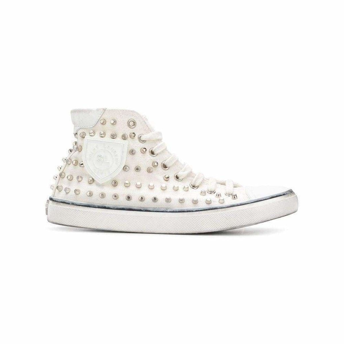 High-top canvas sneakers in white.