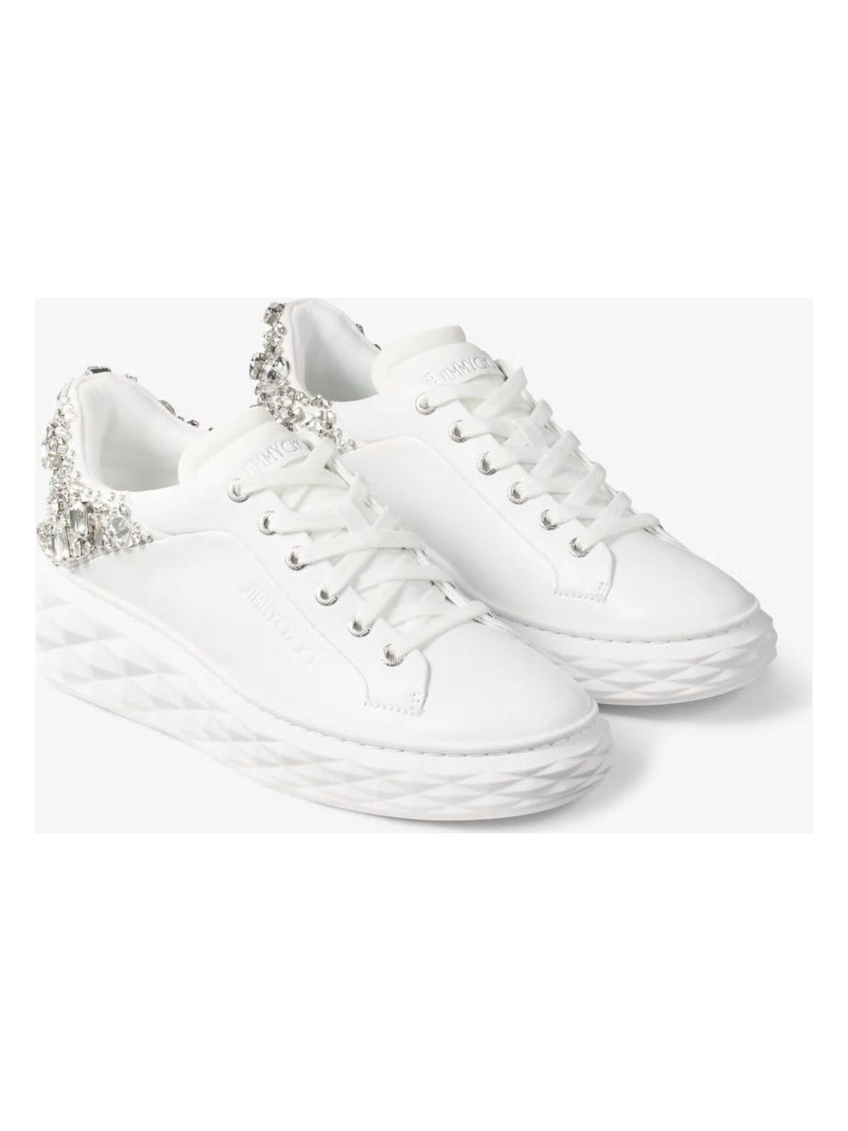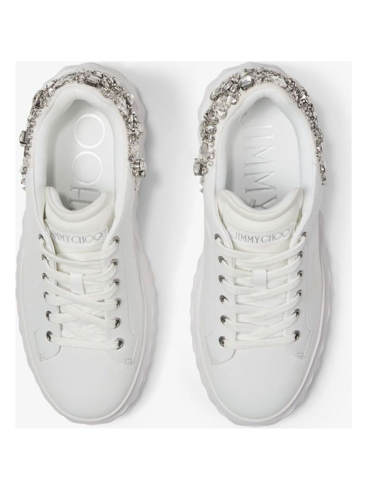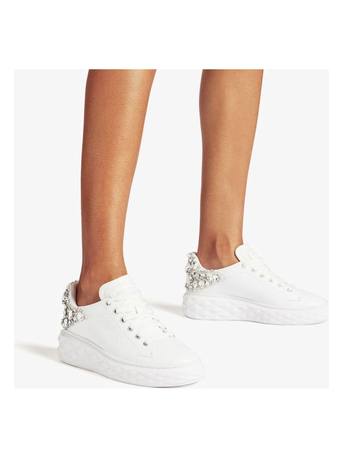DIAMOND MAXI/F II SNEAKERS IN WHITE LEATHER WITH METALLIC SILER NAPPA INSERT AT THE BACK. THEY FEATURE LACE-UP CLOSURE, EMBOSSED JIMMY CHOO LOGO ON HEEL, ON THE SIDE AND ON THE FRONT, EVA INTERSOLE AND DIAMOND RUBBER SOLE. ITA SIZE. SIZE NATIONALITY: IT