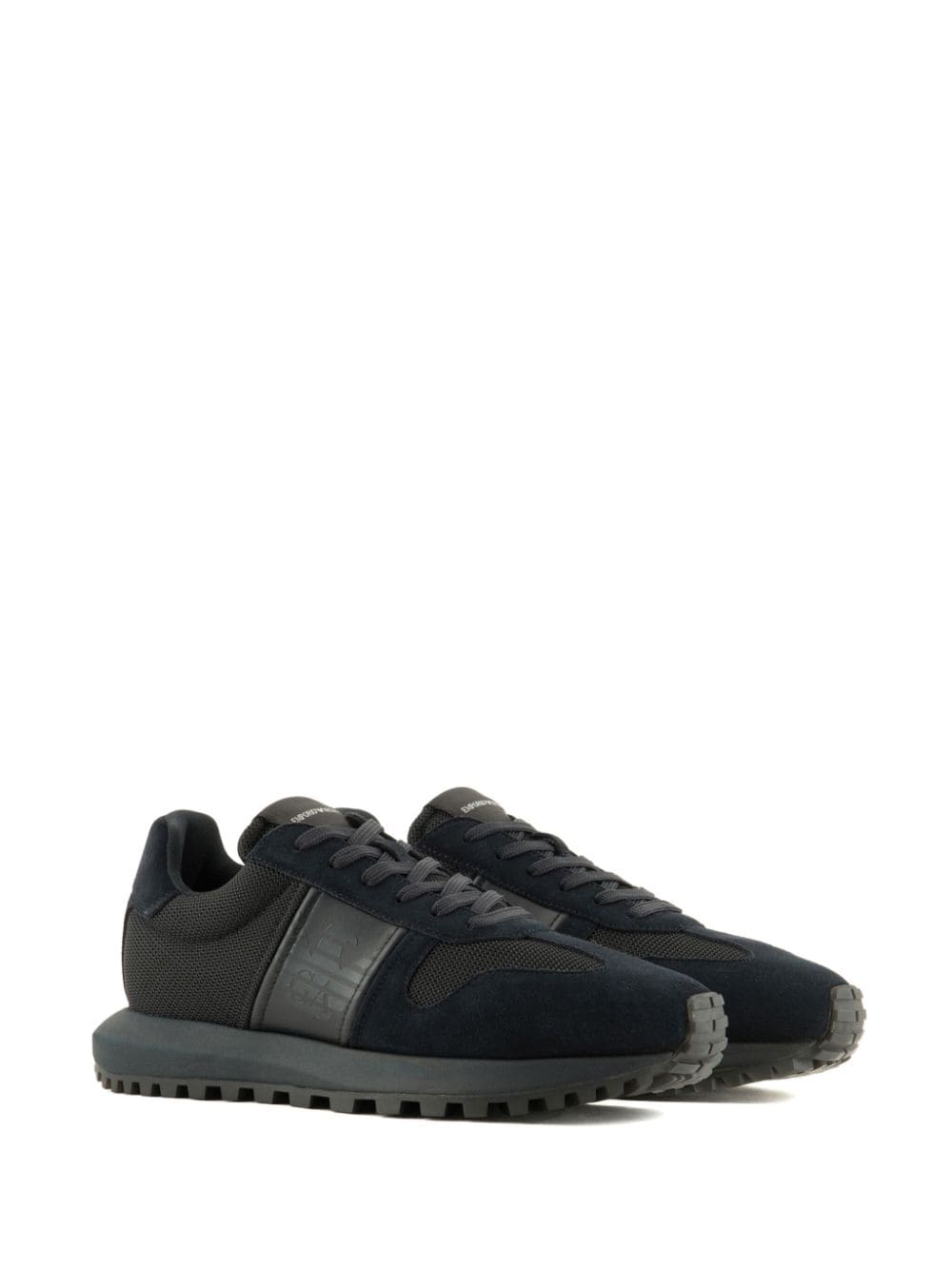 Step up your sneaker game with these stylish kicks featuring a sleek black panelled design, cool mesh detailing, and a bold logo print on the side. Complete with a logo patch at the tongue, round toe, front lace-up fastening, and a ridged rubber sole, these sneakers are the perfect combination of fashion and function.