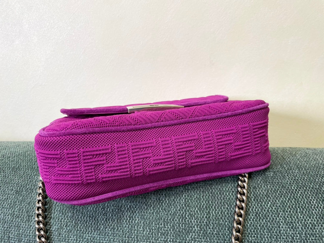 Iconic medium Baguette bag with chain shoulder strap, made of purple technical mesh with a 3D-texture FF motif. Decorated with an FF clasp.