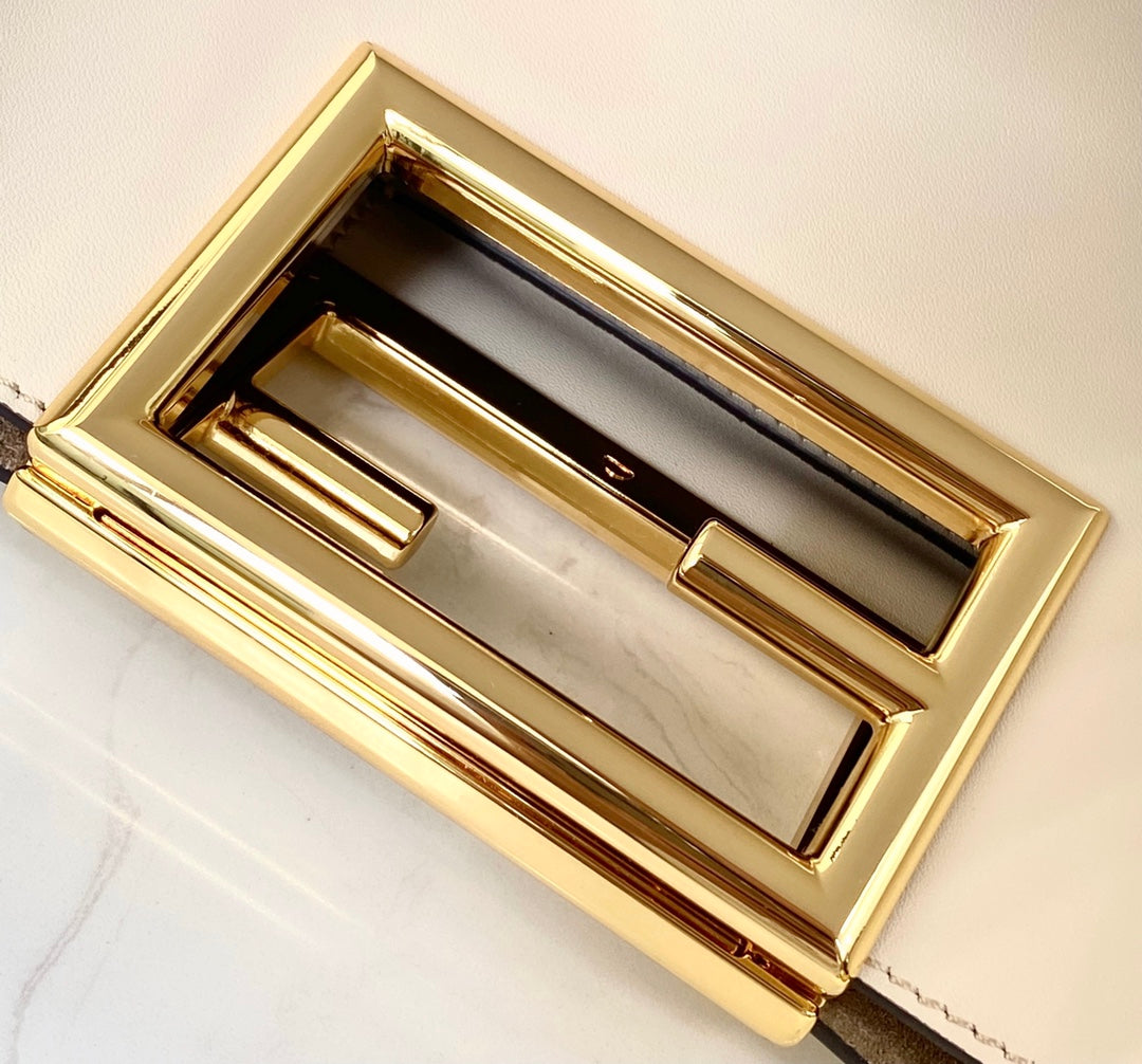 Small Fendi Way bag made of camellia-colored leather, with oversize FF logo metal handles.