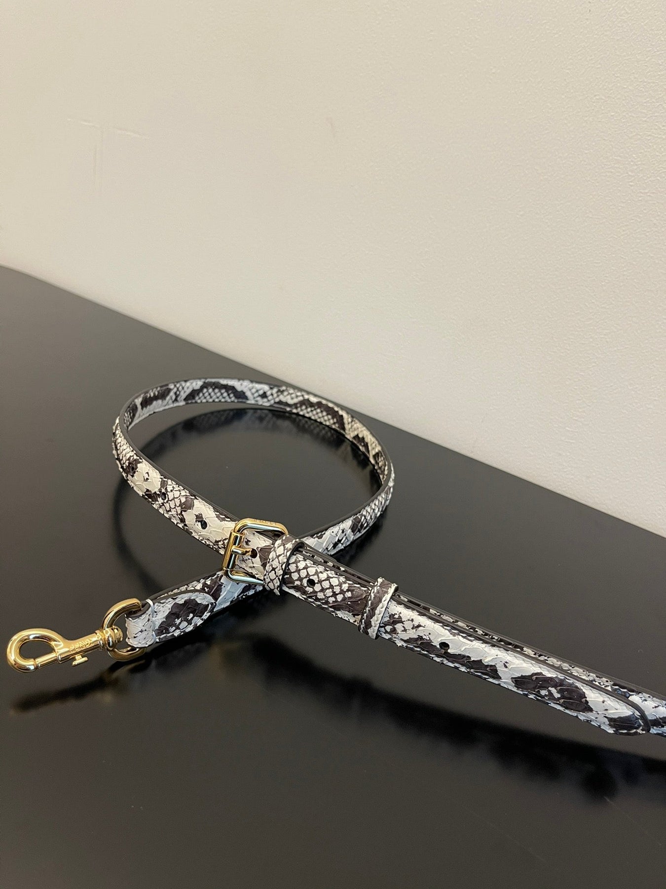 Can be worn over the shoulder or cross-body thanks to the adjustable, detachable elaphe shoulder strap.