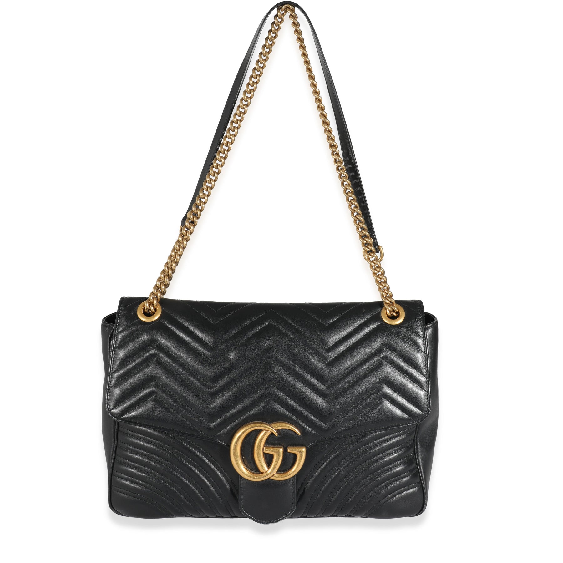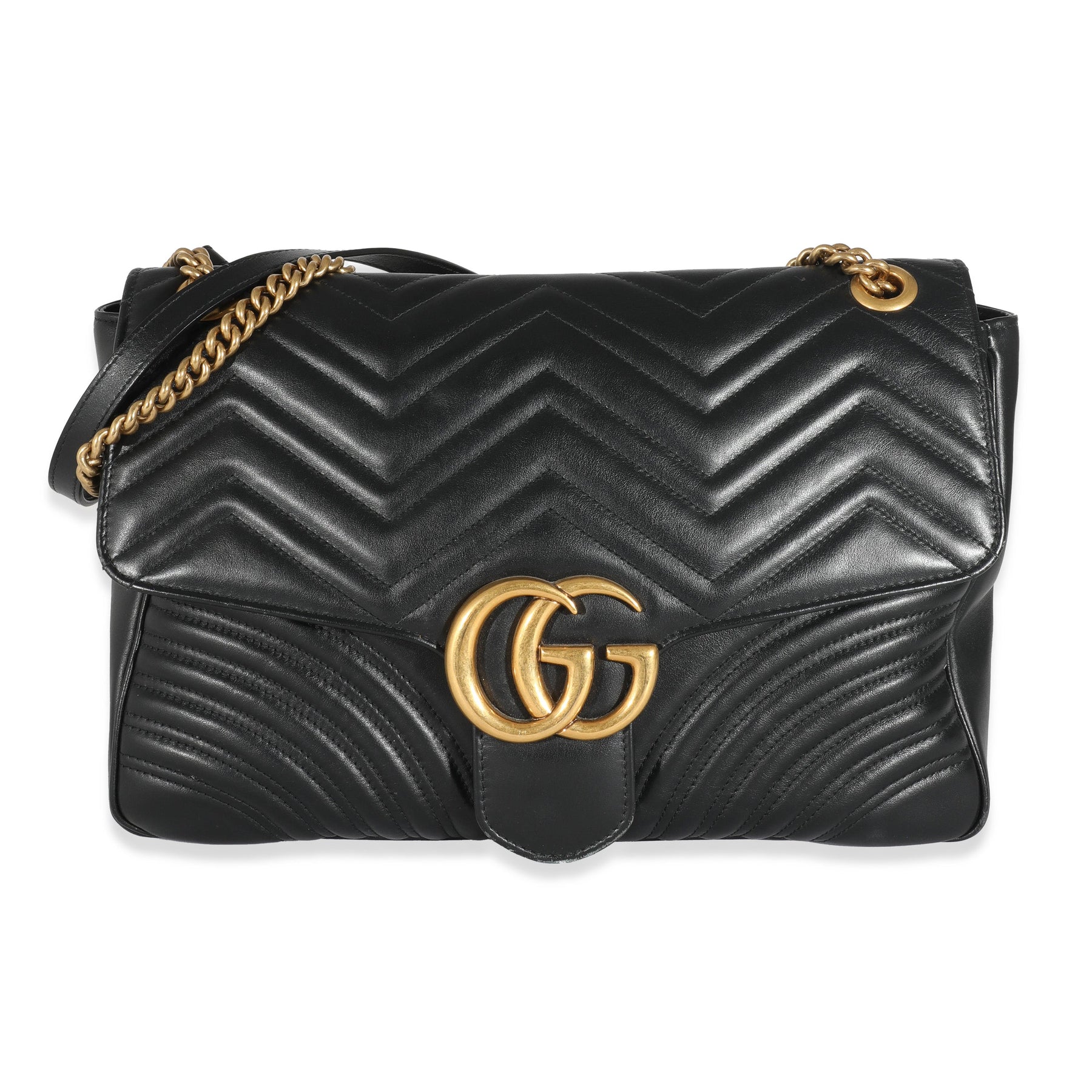 Gucci Black Matelassé Large GG Marmont Shoulder Bag