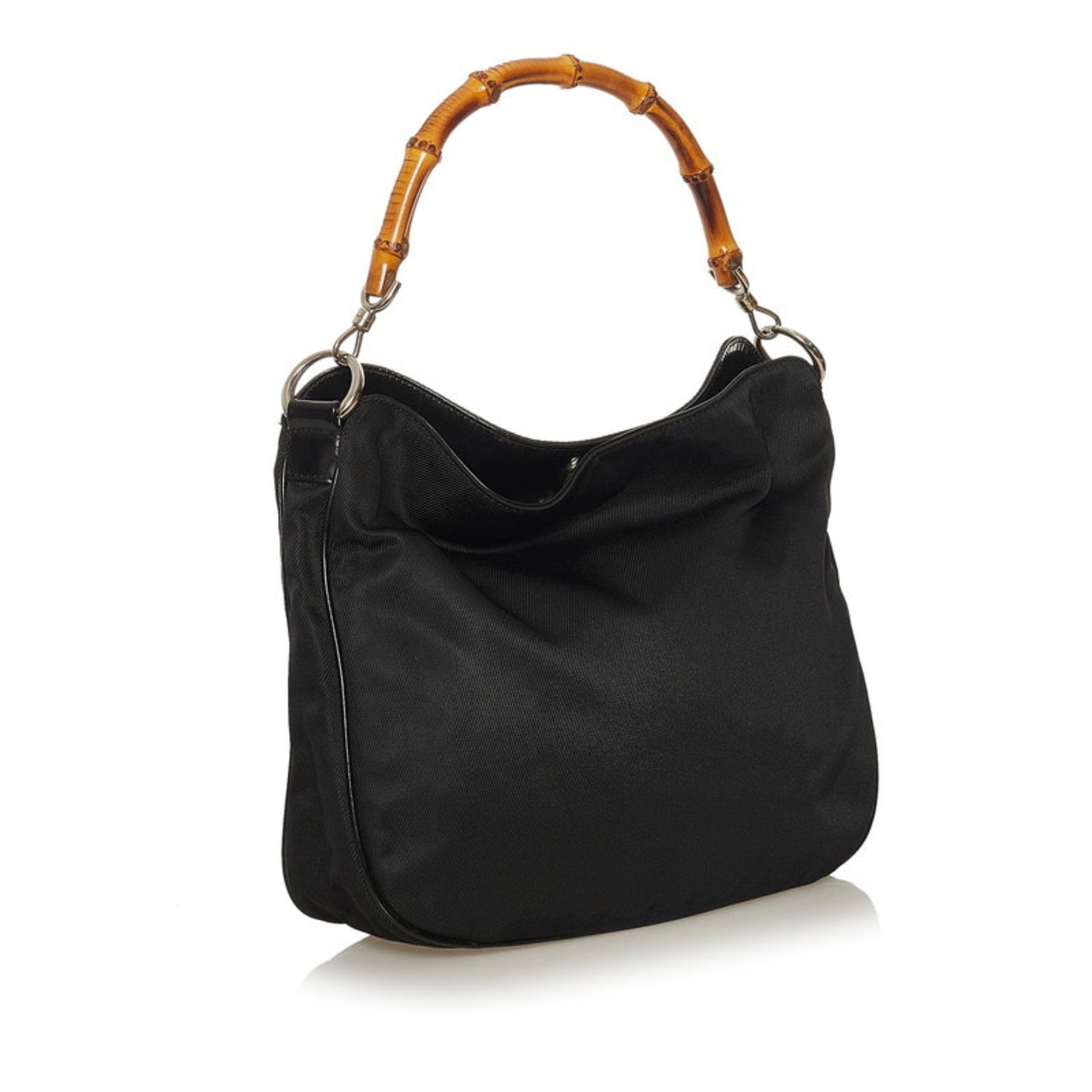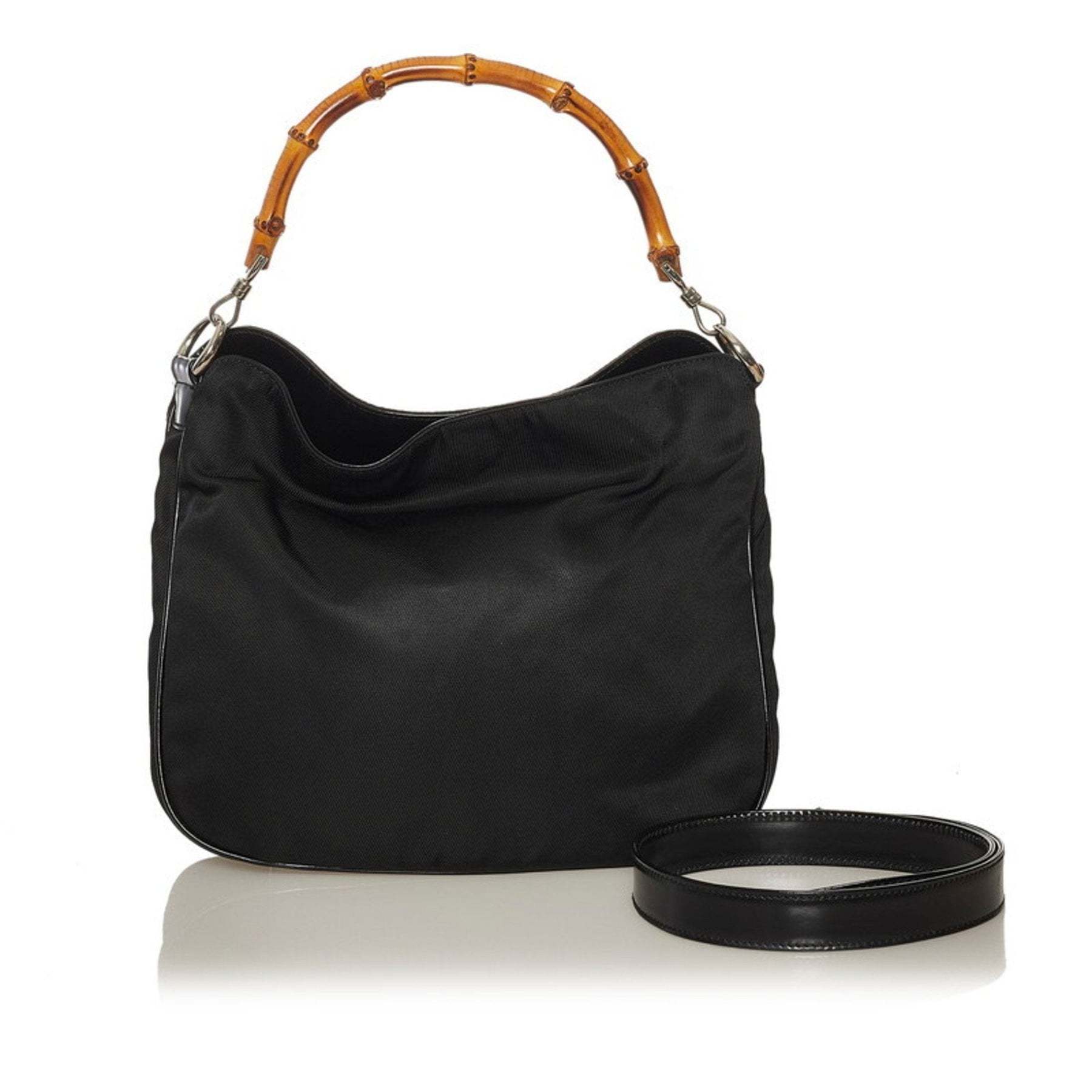 Gucci bamboo handbag shoulder bag 001 1781 1638 black nylon leather ladies GUCCI