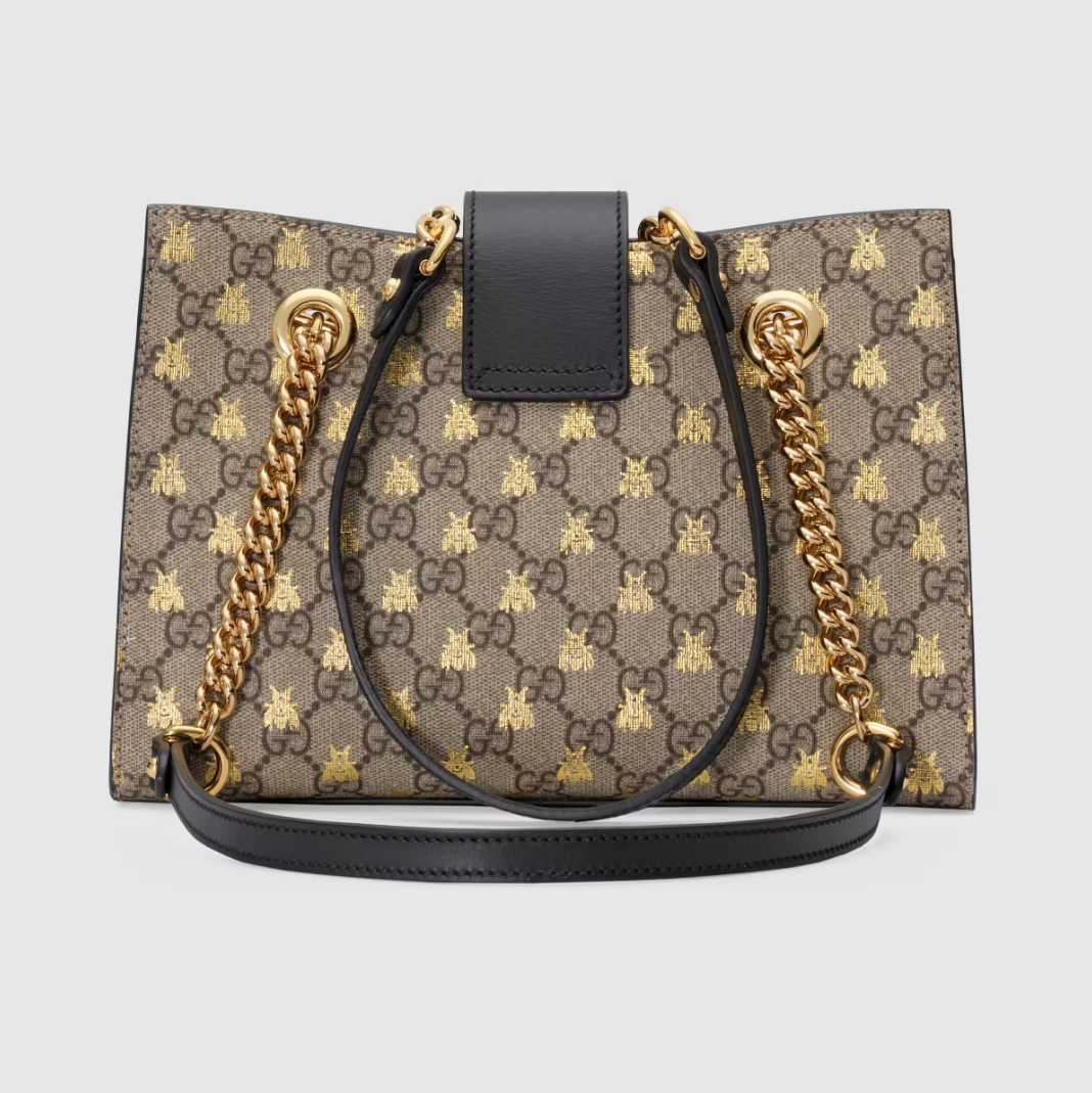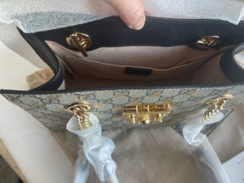 Gucci Bee Padlock Shoulder Bag Beige Ebony Small GG Supreme Leather Handbag New