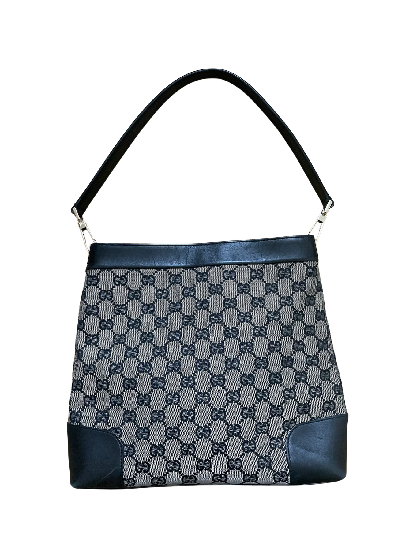 GUCCI GG Black Beige shoulder bag in new condition with few signs of patina and previous use on both the exterior. Minor marks and scratches are found on the corners and hardware.
