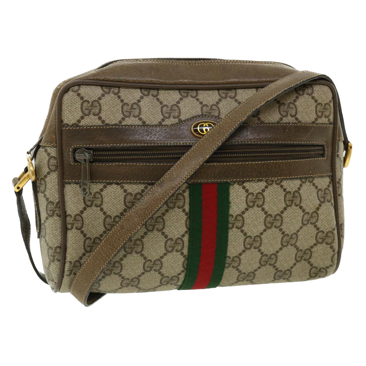 GUCCI GG Canvas Web Sherry Line Shoulder Bag Beige Green 98.02.004 yk5881B