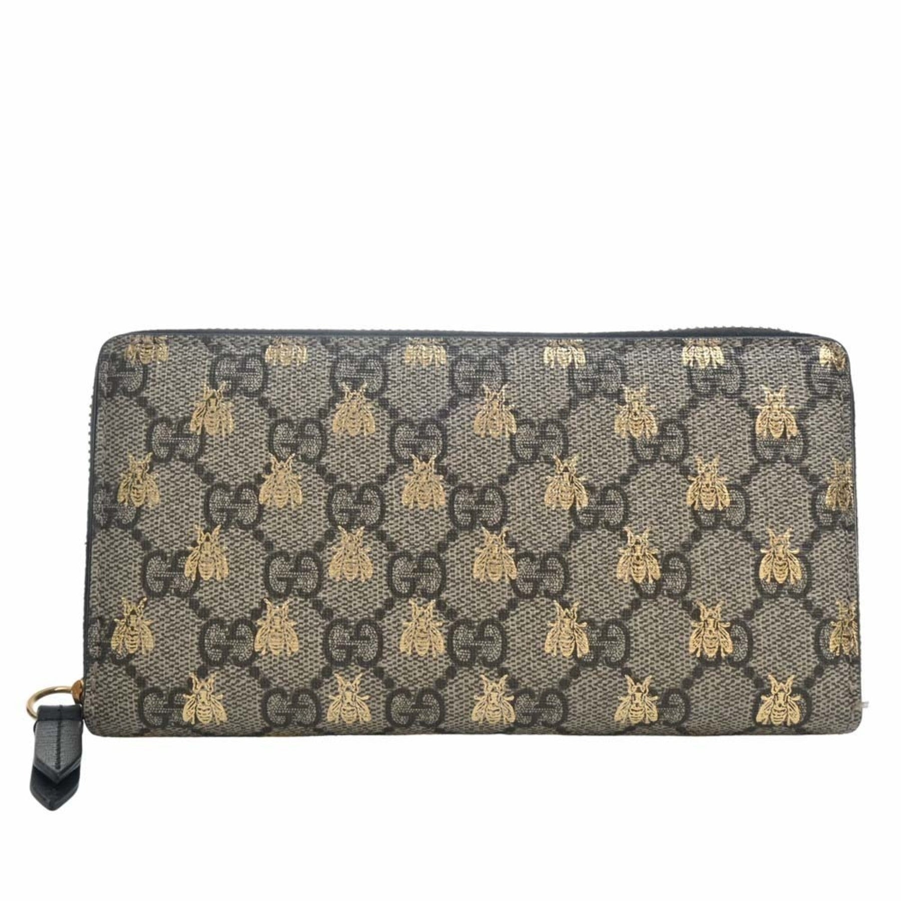 Gucci GG Supreme Bee Round Long Wallet 410102 Beige Women's