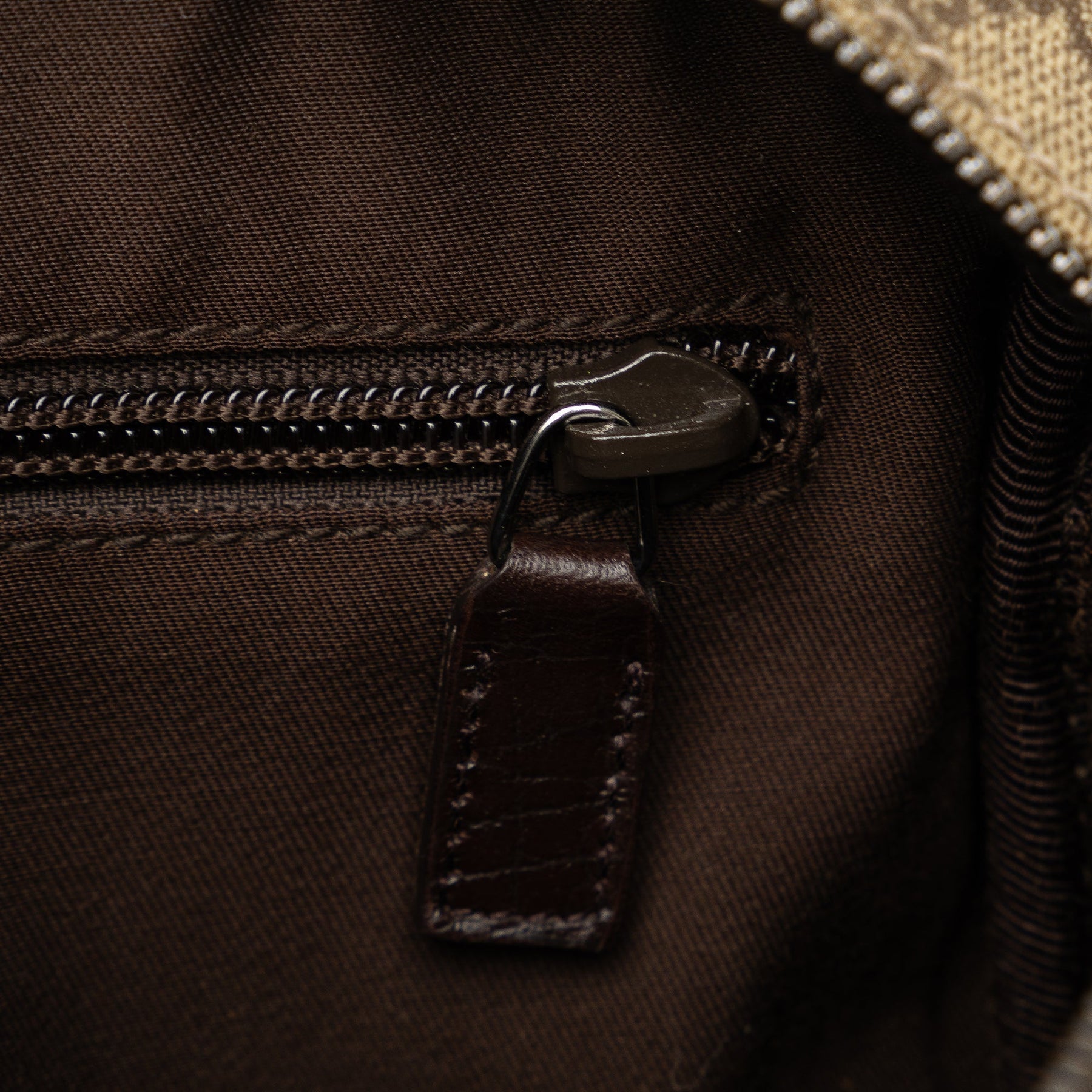 This crossbody bag features a coated canvas body with leather trim, an adjustable flat strap, a top zip closure, an exterior front zip pocket, and an interior slip pocket.