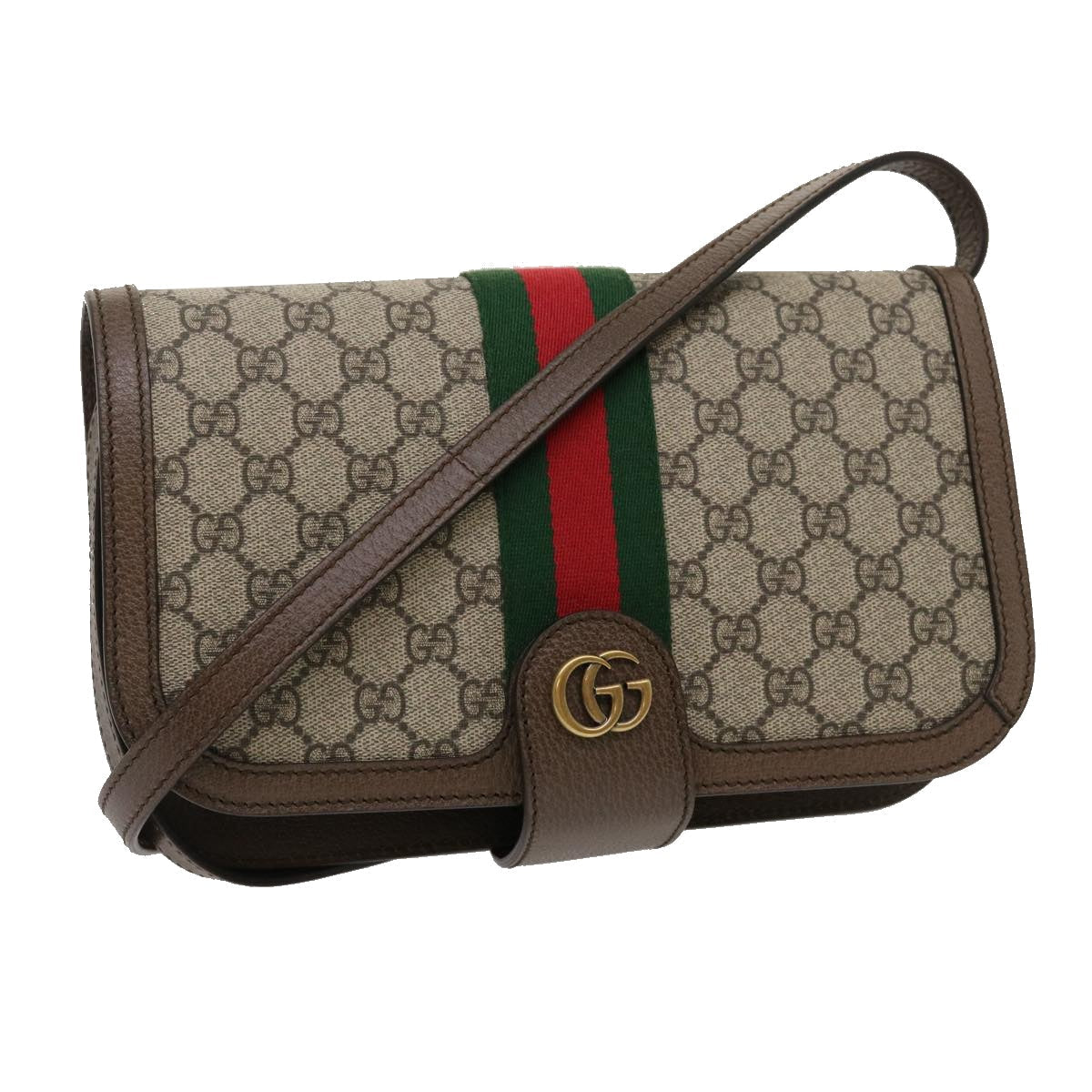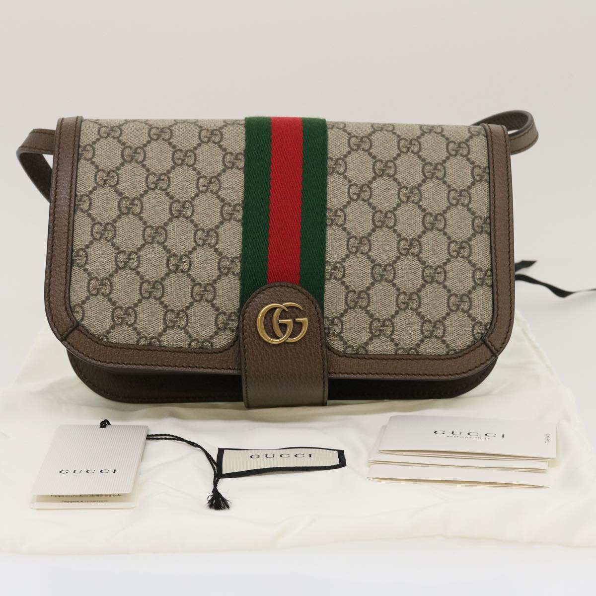 GUCCI GG Supreme Ophidia Web Sherry Line Shoulder Bag Beige 29884A