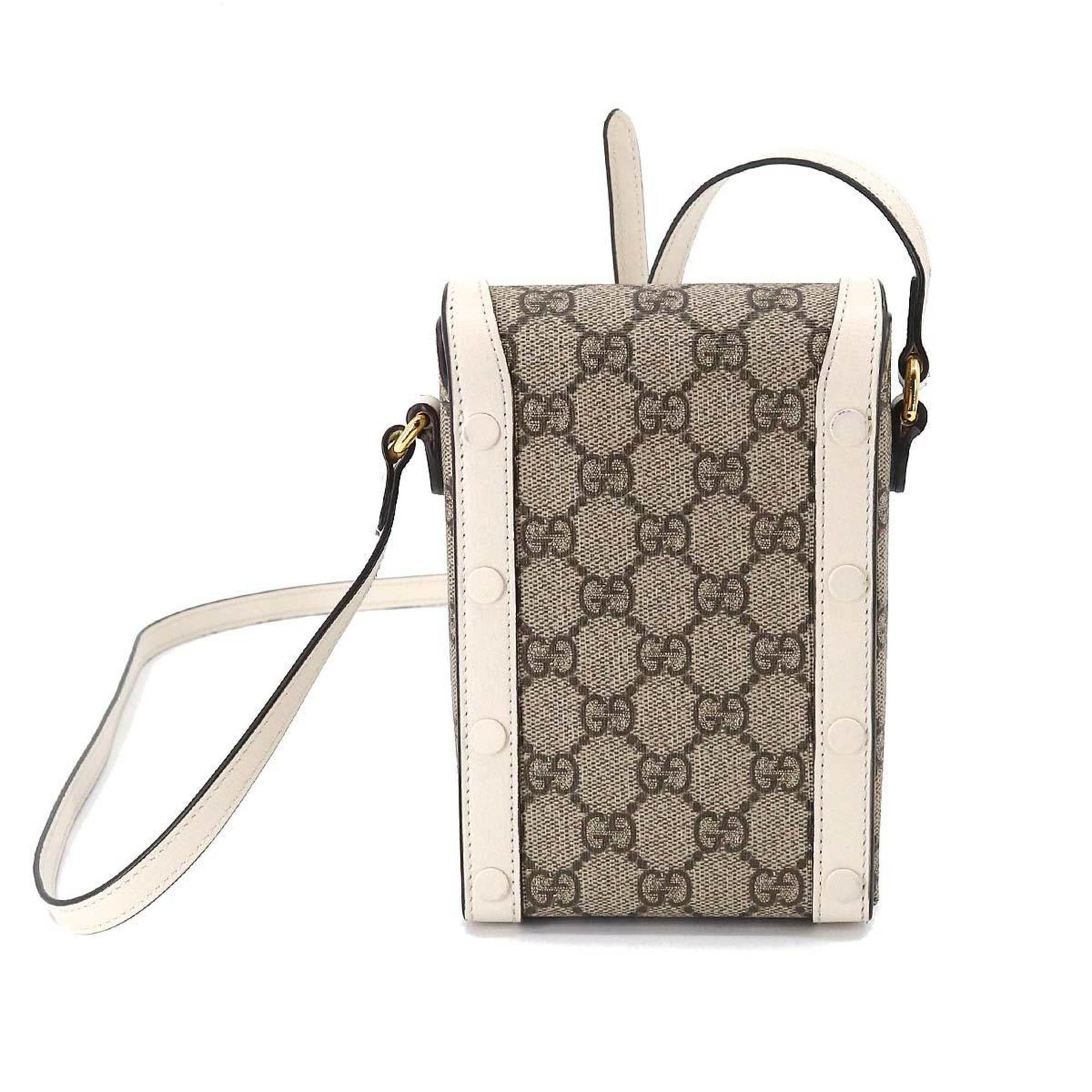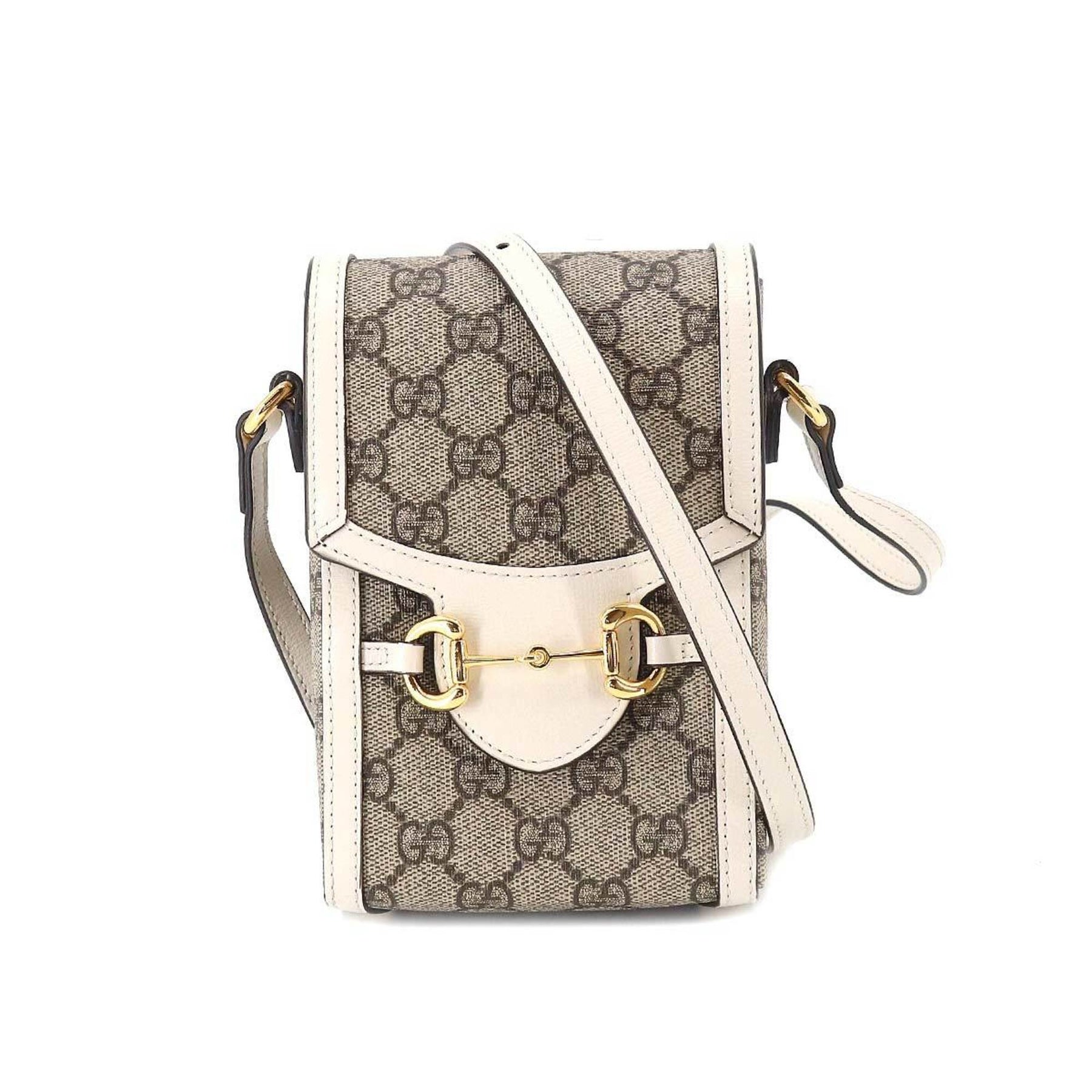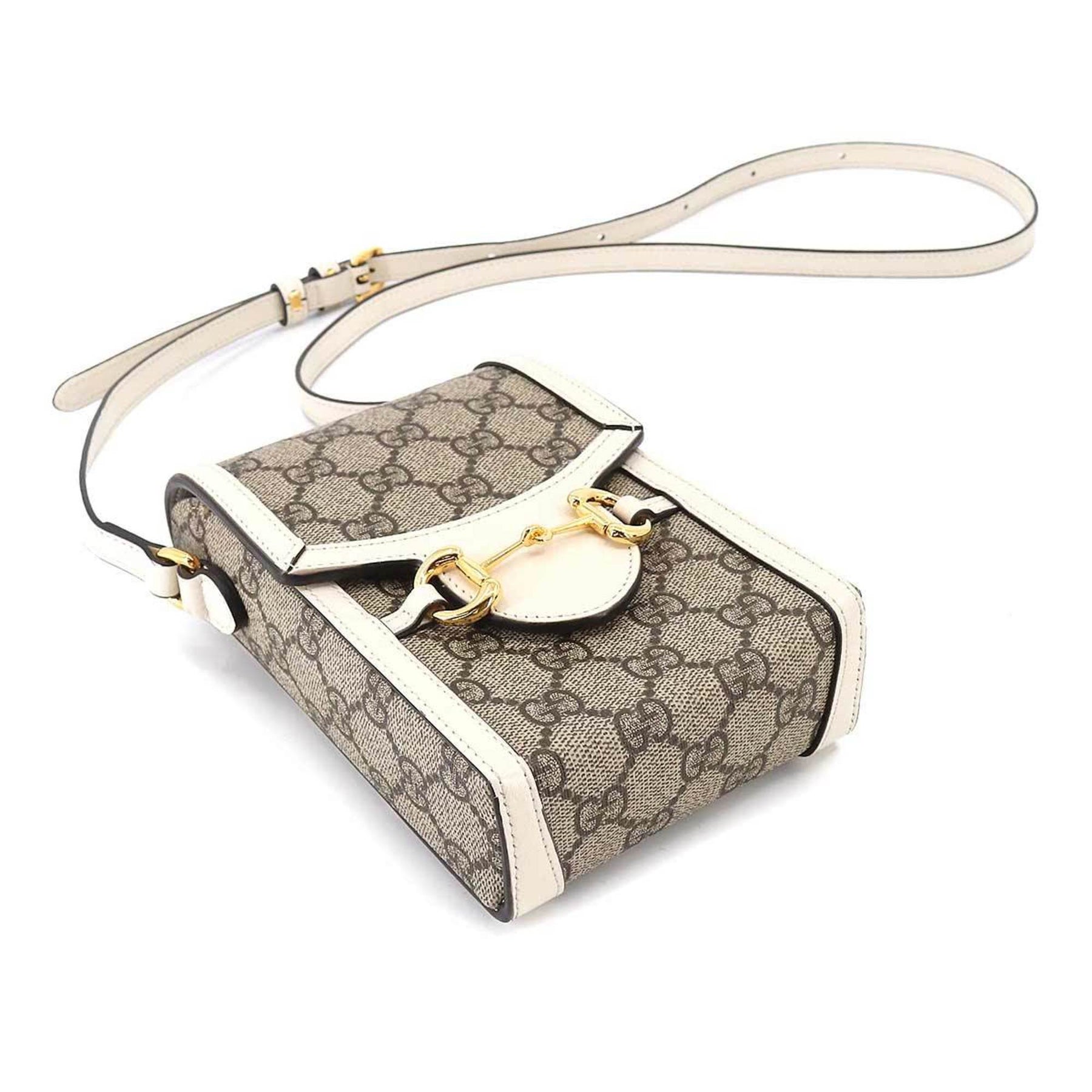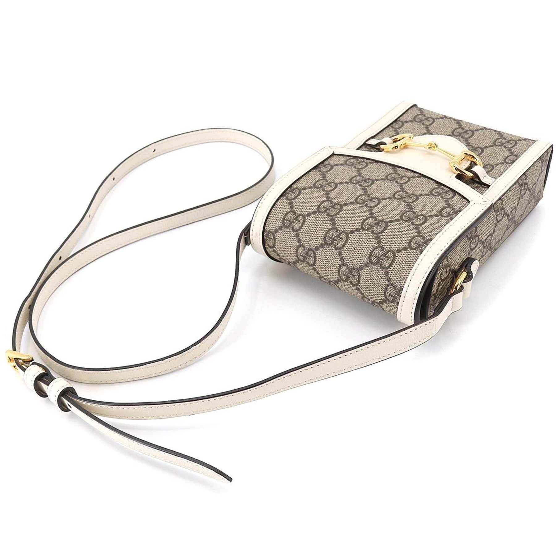 GUCCI Horsebit 1955 Mini Shoulder Bag GG Supreme Leather White Beige 625615