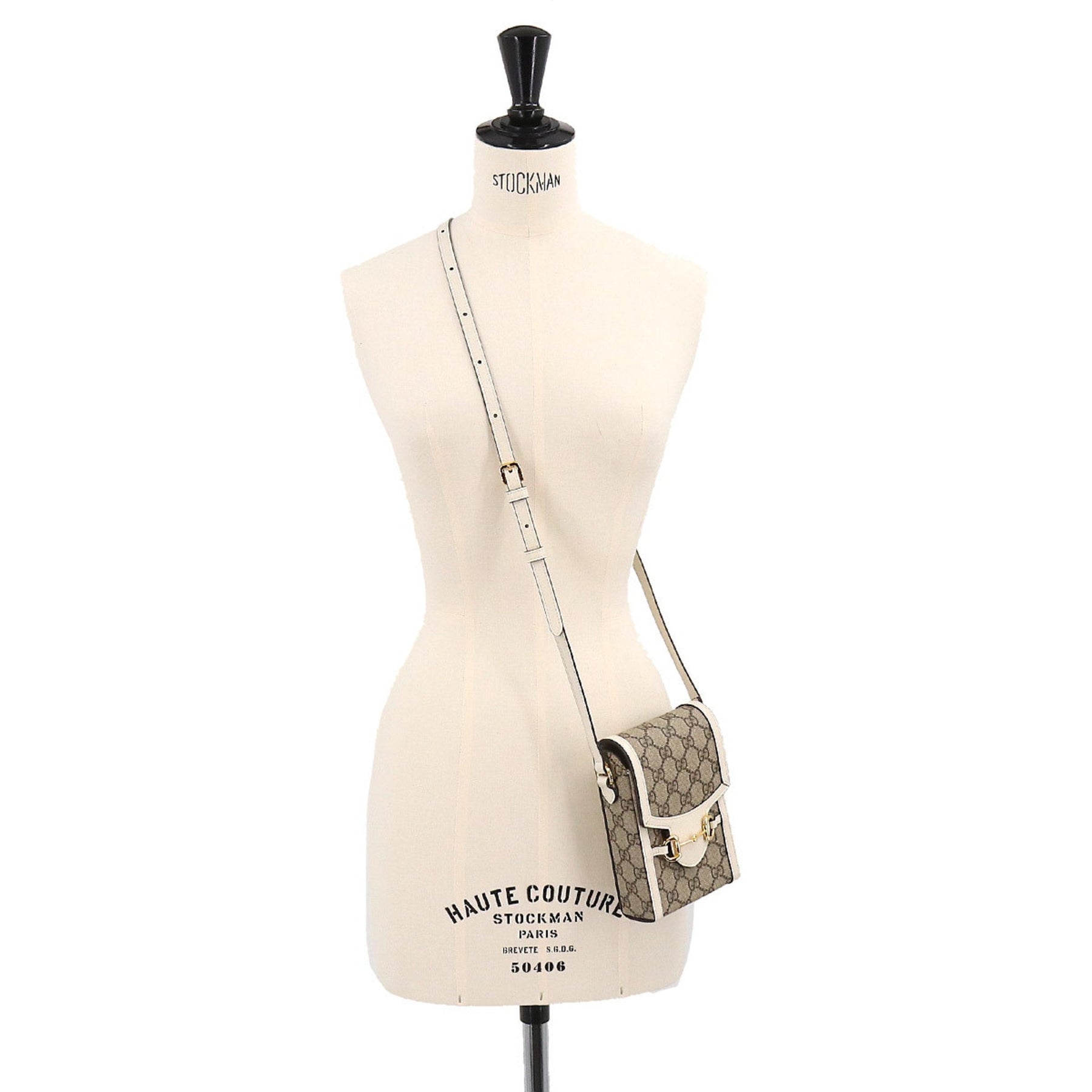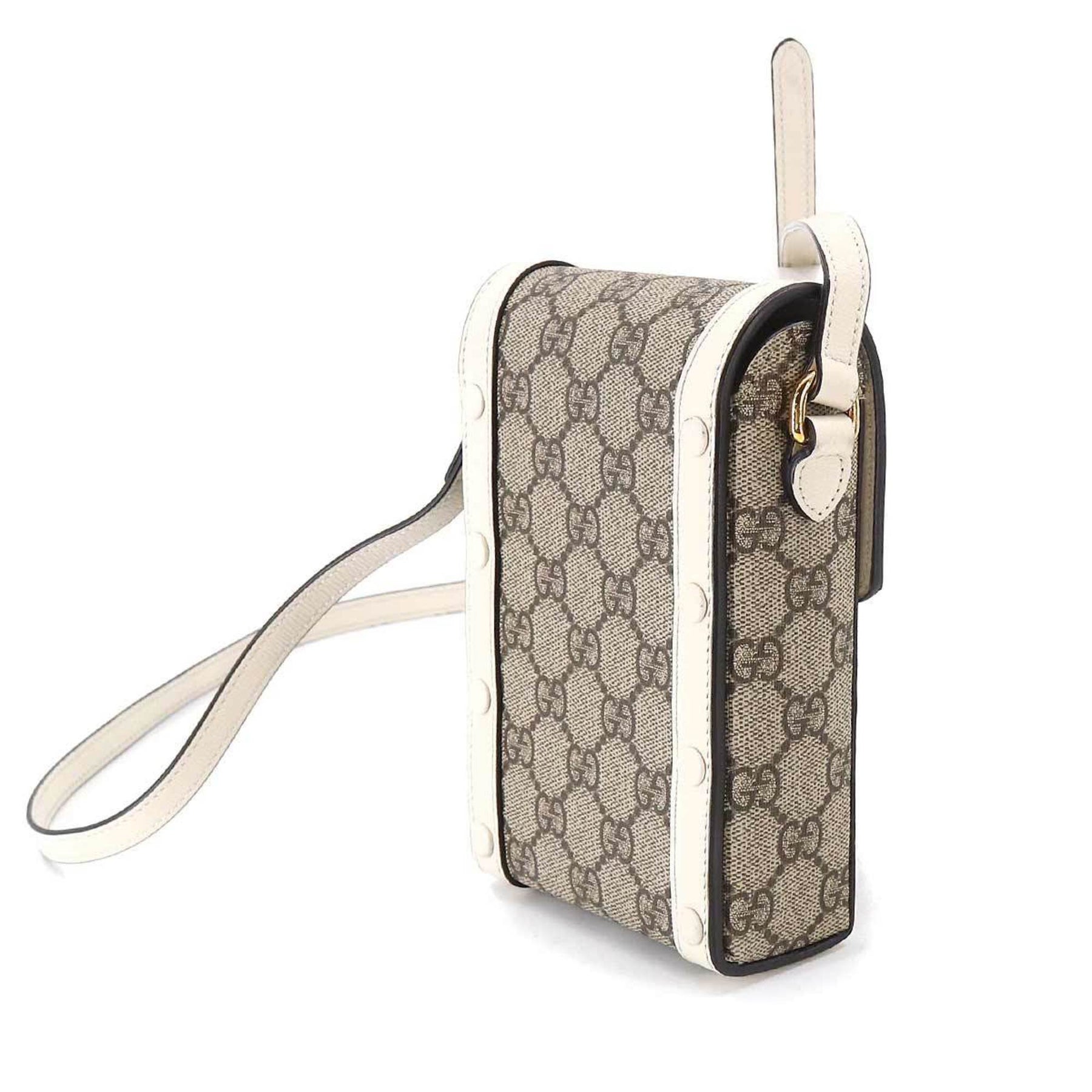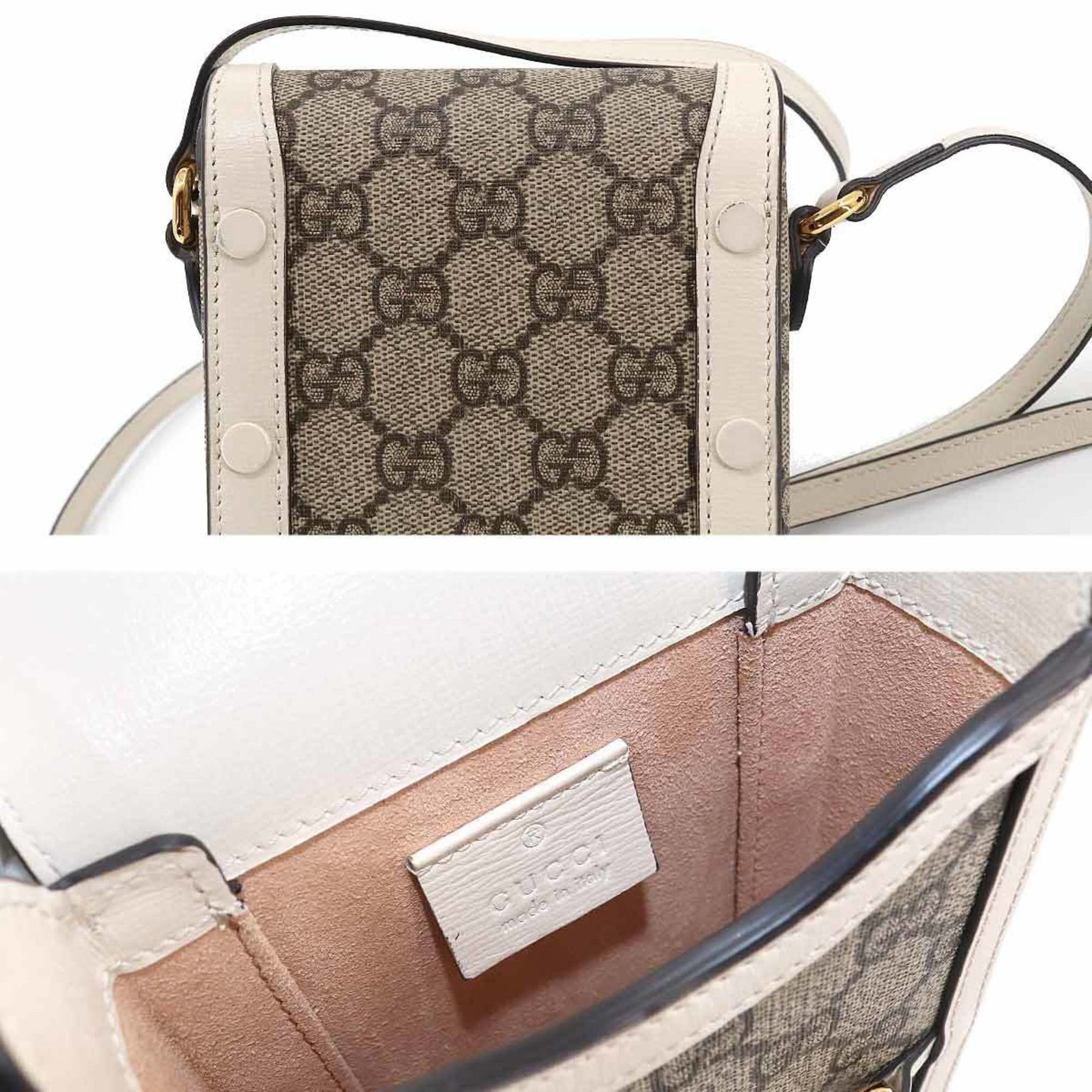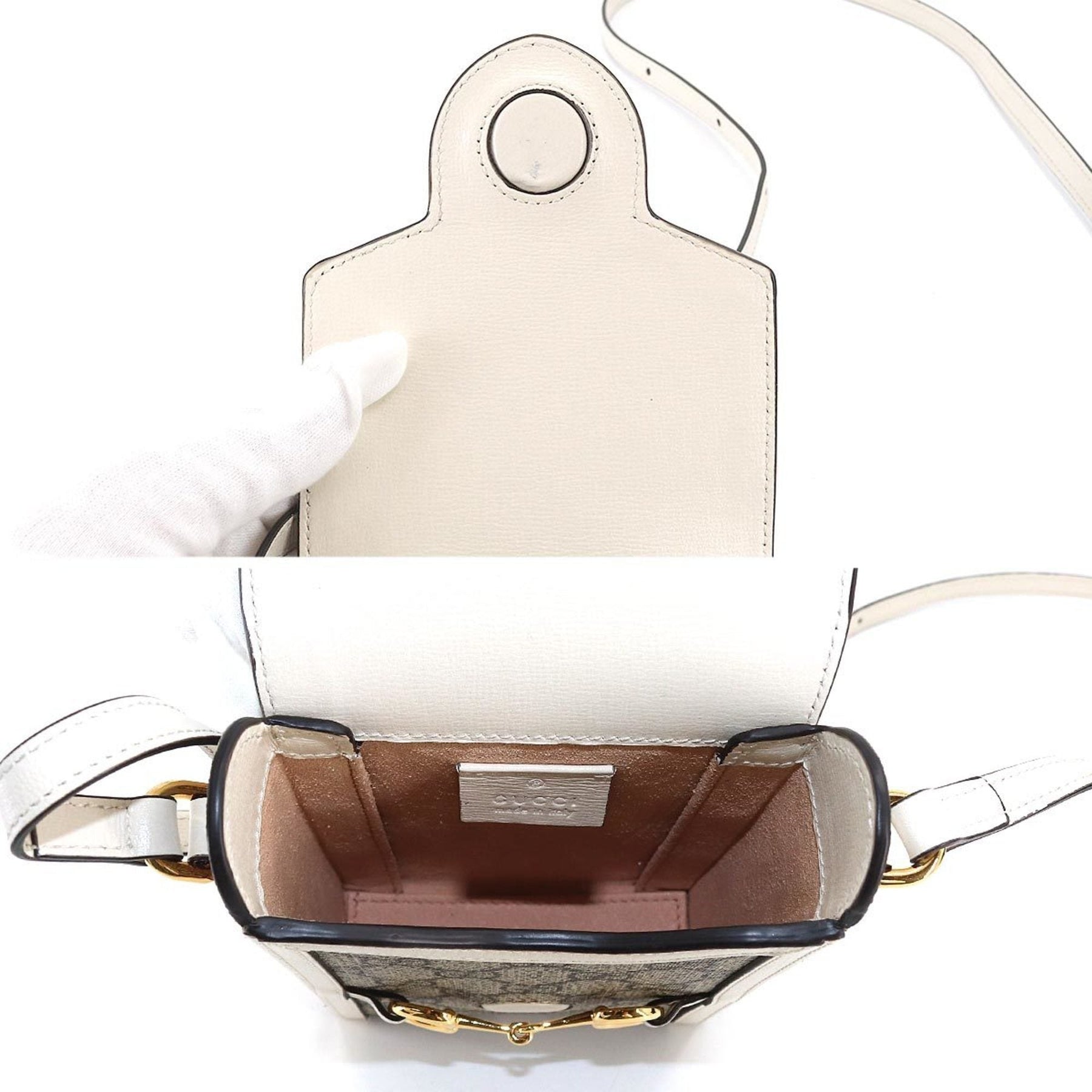 GUCCI Horsebit 1955 Mini Shoulder Bag GG Supreme Leather White Beige 625615