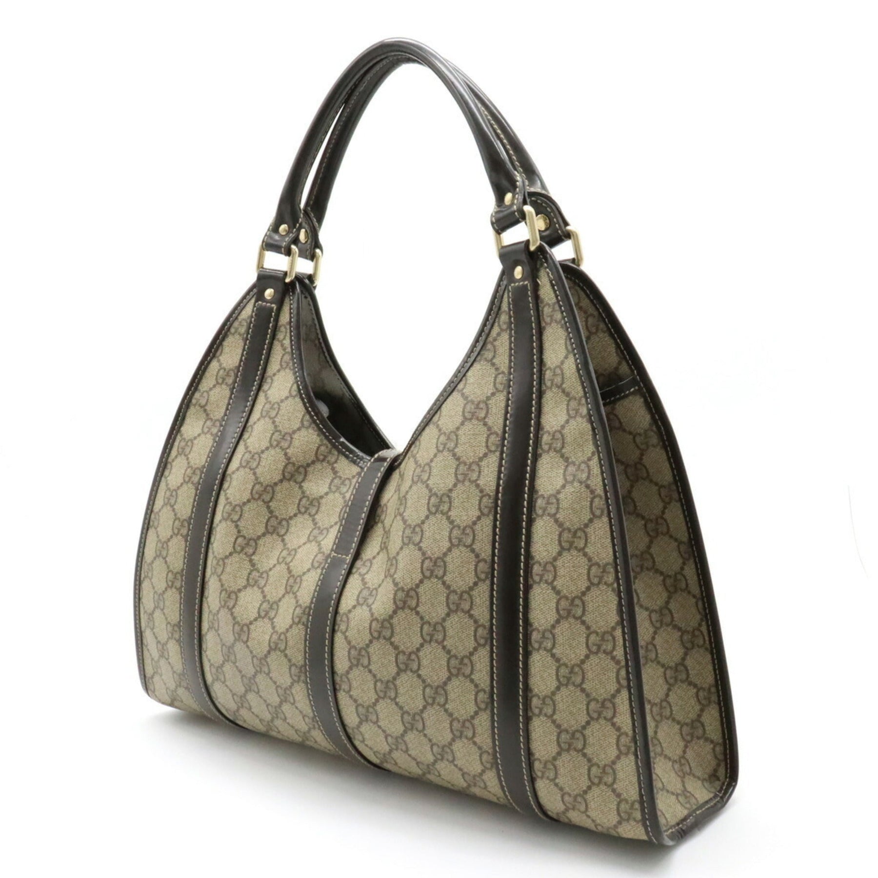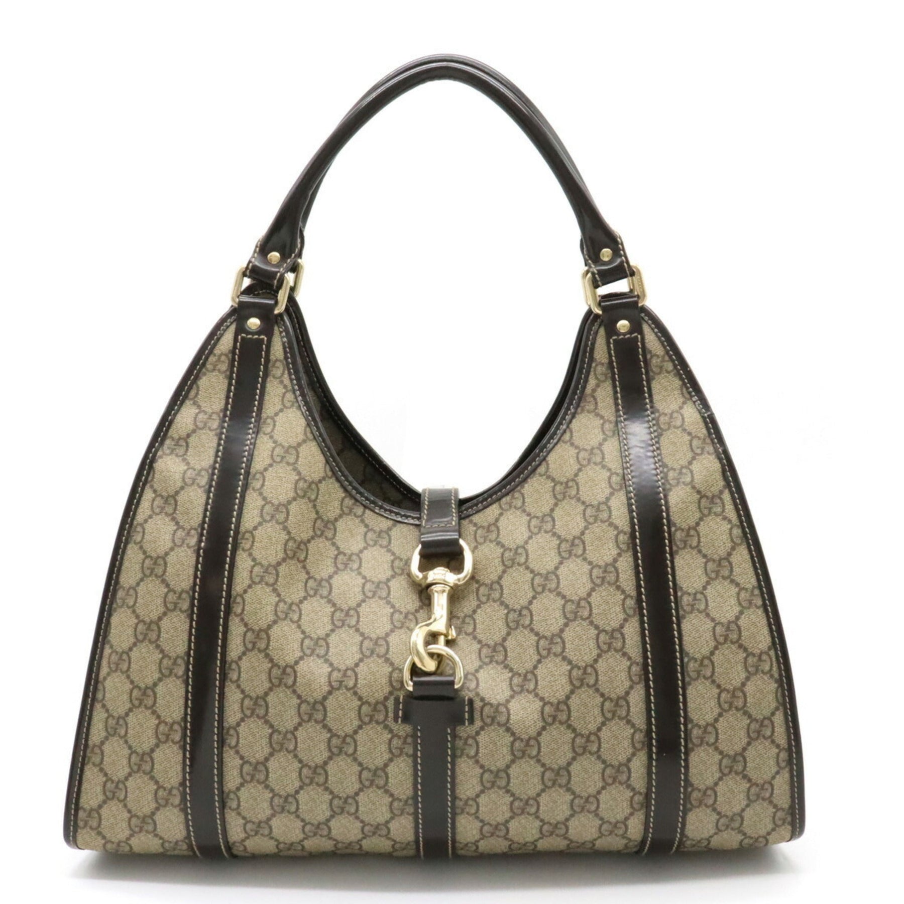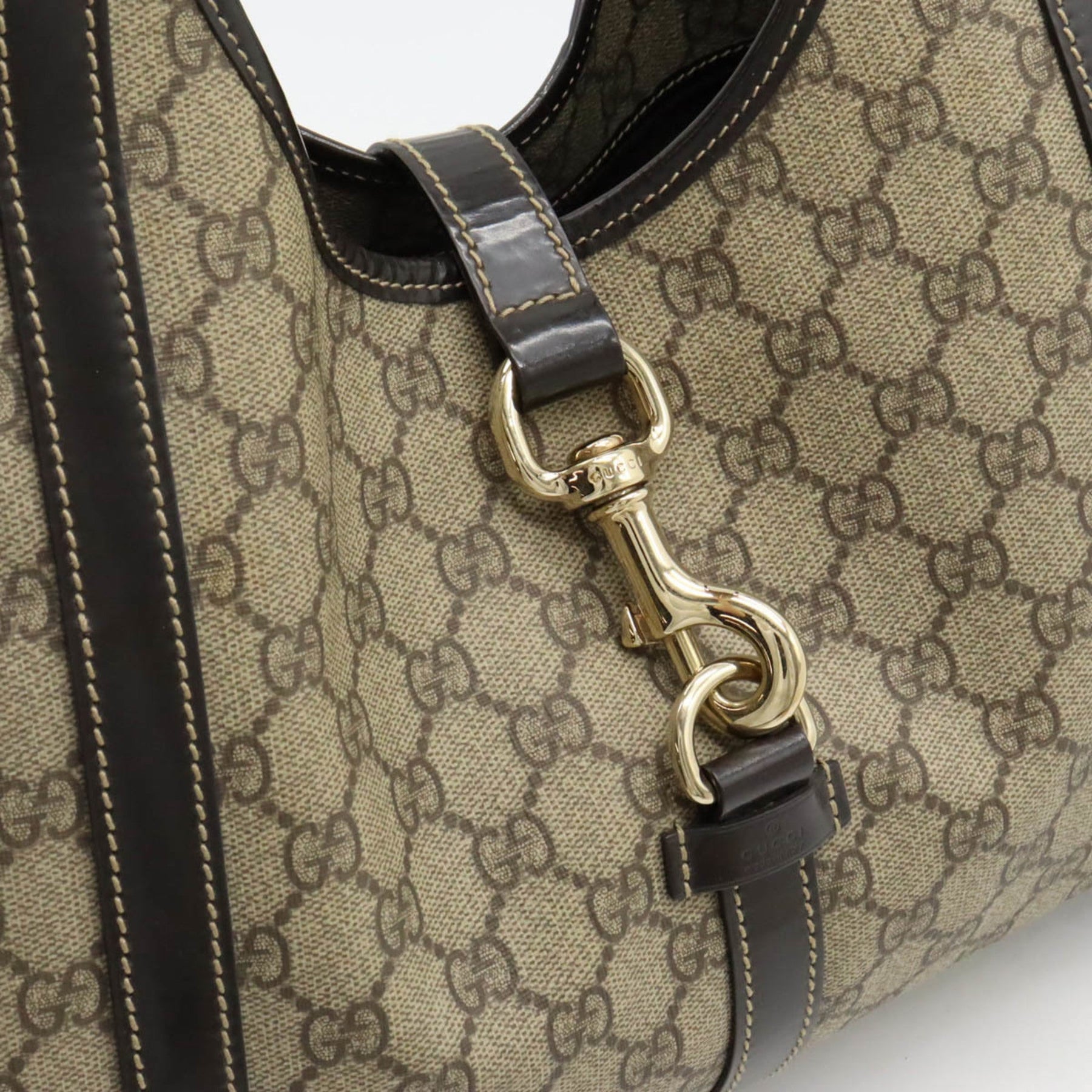 Gucci Jackie GG Plus Supreme Shoulder Bag PVC Leather Khaki Beige Dark Brown 203494